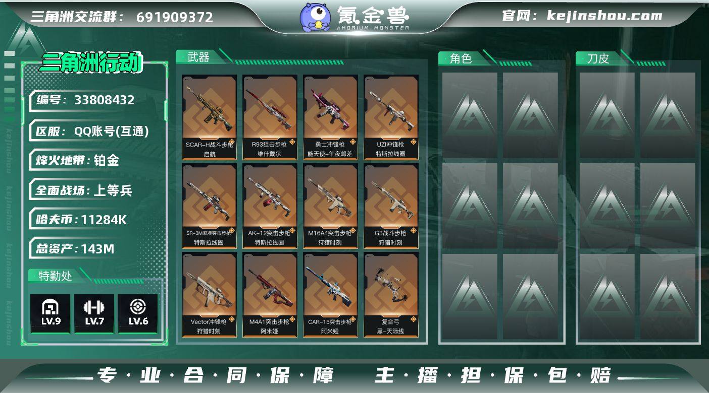【AYS271】143m总资产-11284k哈伏币-60烽火等级-铂金-50战场等级-上等兵 【近战皮肤】:近战-黑鹰 【传说外观】:M4A1突击步枪-阿米娅,M16A4突击步枪-狩猎时刻,AK-12突击步枪-特斯拉线圈,SCAR-H战斗步枪-启航,G3战斗步枪-狩猎时刻,CAR-15突击步枪-阿米娅,Vector冲锋枪-狩猎时刻,UZI冲锋枪-特斯拉线圈,SR-3M紧凑突击步枪-特斯拉线圈,勇士冲锋枪-能天使-午夜邮差,R93狙击步枪-维什戴尔,复合弓-黑·天际线 【史诗外观】:MP7冲锋枪-原型机,AKM突击步枪-林中猎手,M16A4突击步枪-竞赛选手,AUG突击步枪-蝮蛇,SG552突击步枪-深海恐惧,MP5冲锋枪-深海恐惧,MP5冲锋枪-战术竞备,MP5冲锋枪-竞技风,勇士冲锋枪-深海恐惧,勇士冲锋枪-工业狂潮,M1014霰弹枪-林中猎手,PKM通用机枪-蝮蛇,SV-98狙击步枪-林中猎手,SV-98狙击步枪-囚徒,R93狙击步枪-竞赛选手,M700狙击步枪-竞技风,沙漠之鹰-曙光 【稀有外观】:M14射手步枪-天际线,M4A1突击步枪-零点,AKM突击步枪-前沿科技,AKM突击步枪-肃杀,QBZ95-1突击步枪-公平竞技,K416突击步枪-碳纤维,M16A4突击步枪-街头涂鸦,AUG突击步枪-全金属外壳,M7战斗步枪-捣蛋鬼,AK-12突击步枪-零点,AK-12突击步枪-前沿科技,SCAR...