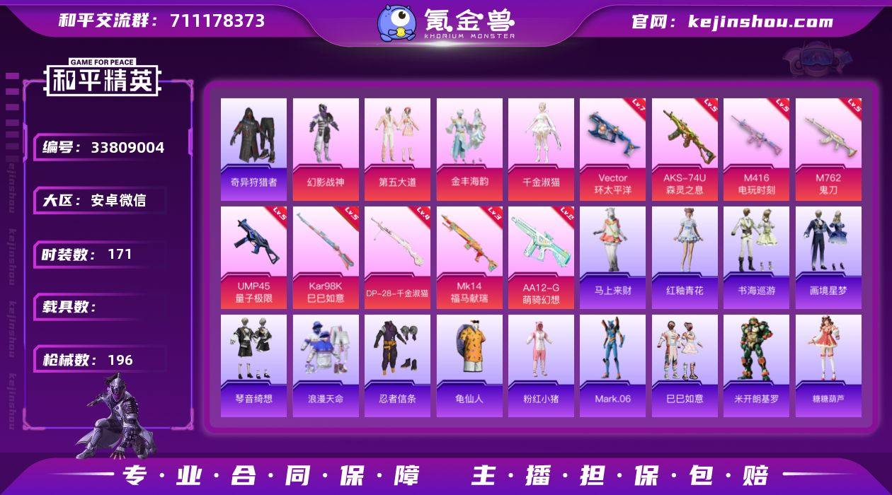 【AYH436】安卓 微信-4粉装-9特效枪-0载具-1粉色飞行器-61399热力值-5王牌印记-171套装-196枪皮【热门品类】:套装-浪漫天命,套装-奇异狩猎者,套装-忍者信条,套装-龟仙人,套装-粉红小猪,角色-Mark.06【粉色套装】:粉装-幻影战神,粉装-第五大道,粉装-金丰海韵,角色-千金淑猫【粉色枪皮等级】:M416-电玩时刻(五级),M762-鬼刀(五级),UMP45-量子极限(五级),Vector-环太平洋(七级),AKS-74U-森灵之息(五级),Kar98K-巳巳如意(五级),Mk14-福马献瑞(三级),AA12-G-萌骑幻想(二级),DP-28-千金淑猫(四级)【粉色枪皮】:M416-电玩时刻,M762-鬼刀,UMP45-量子极限,Vector-环太平洋,AKS-74U-森灵之息,Kar98K-巳巳如意,Mk14-福马献瑞,AA12-G-萌骑幻想,DP-28-千金淑猫【粉色飞行器】:齐天大圣飞行器