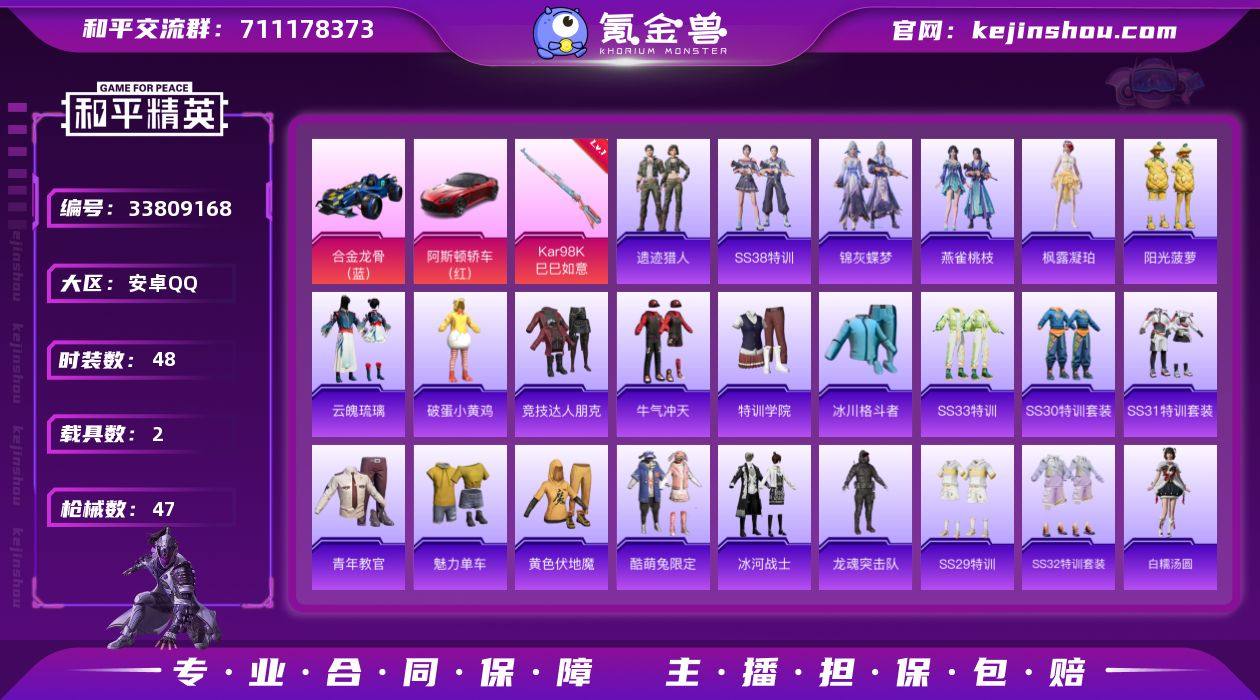 【3载具1特效枪 秒换绑不用等】 安卓Q区-16079热力值-48套装-47枪皮 【3载具】 阿斯顿·马丁DBS(红) 合金龙骨(蓝) 空客H135-蔚蓝之翼【1特效枪】 Kar98K-巳巳如意(1级)【57热门】 冰川格斗者 M762-天降萌叽 UMP45-蓝色火焰 破蛋小黄鸡 特训学院 青年教官 牛气冲天 魅力单车 酷萌兔限定 竞技达人朋克 黄色伏地魔 M249-无面战甲 冰河战士 AWM-天降萌叽 SS12特训 大橘大利 SS13特训 SS14特训 SS17特训 龙魂突击队 SS29特训 SS30特训 汤姆逊-鸢尾珑雾 枫露凝珀 M16A4-冰河战士 SS31特训 MG3-鸢尾珑雾 SS33特训 SS32特训 战术大师 P18C-原初圣火 Kar98K-彩虹符号 QBU-未来领航者 SS38特训 M417-锦灰蝶梦 燕雀桃枝 Mk14-冰河战士 MP7-G-锦灰蝶梦 Mini14-香桃花海 M338-锦灰蝶梦 SCAR-L-星途旅人 平底锅-原初圣火 破片手榴弹-萌趣颜团子 S1897-锦灰蝶梦 平底锅-锦灰蝶梦 UZI-冰河战士 遗迹猎人 锦灰蝶梦 破片手榴弹-星途旅人 烟雾弹-鹅来了 鬼马先锋 VSS-香桃花海 云魄琉璃 元素星魂 白糯汤圆 Mk14-阳光菠萝 阳光菠萝【5背包】 冰河战士背包(3级) 潮汐统领背包(3级) 蝶变背包(3级) 香桃花海背包(3级) 炫彩节奏背包(3级) 营地ID:738589119