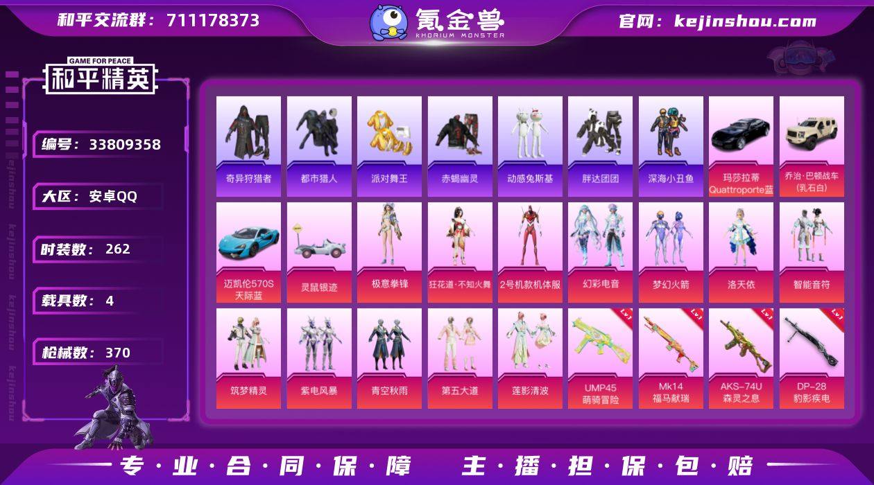 可二次【赤蝎都市男神金鞋小熊背包16特效枪13粉装5载具红眼罩红螳螂 秒换绑不用等】 安卓Q区-120524热力值-262套装-370枪皮 【5载具】 玛莎拉蒂Quattroporte(夜幕蓝) 灵鼠银迹 迈凯伦570S(天际蓝) 乔治·巴顿战车(乳石白) 僚机-萌兔起飞【6稀有】 赤蝎幽灵 都市猎人 派对舞王(金靴子) 萌熊伴侣背包(小熊背包) 奇异狩猎者 红眼罩【13粉装】 2号机款机体服(红螳螂) 梦幻火箭 缤纷油彩(猪脸妹) 洛天依 筑梦精灵 极意拳锋 莲影清波 紫电风暴 第五大道 青空秋雨 智能音符 角色-狂花道·不知火舞 幻彩电音【16特效枪】 M416-五爪金龙(5级) M416-暖熊萌萌(7级) AKM-炫紫旋律(4级) AKS-74U-森灵之息(4级) Mk14-福马献瑞(4级) UMP45-萌骑冒险(4级) Mk14-闲梦青缨(5级) SCAR-L-梦幻火箭(5级) AKM-星际浪客(6级) M762-激战未来(5级) AUG-星之彼岸(5级) P90-金丰海韵(5级) DP-28-千金淑猫(5级) Kar98K-巳巳如意(5级) GROZA-镜光银凌(5级) DP-28-豹影疾电(5级)【324热门】 深海小丑鱼 胖达团团 暗影哥特(红眼罩) 浪漫天命 都市猎人(蓝口罩) 雪山精英(老6服) 激萌罗小黑 团圆交子 瑞龙福将 狂沙舞者 M762-风花雪月 白色伏地魔 SS9特训 SS8特训 SS6特训 SS27特训 SS26特训 SS25特训 SS2...