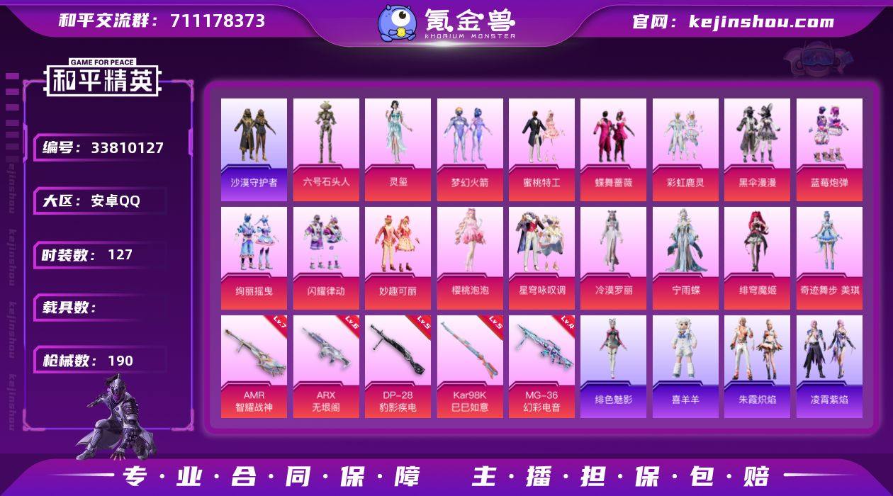 梦幻火箭+黑丝 无二次 安卓手Q-17粉装-5特效枪-3粉色飞行器-59052热力值-3王牌印记-127套装-190枪皮LK2642211 【热门品类】:粉装-梦幻火箭,套装-沙漠守护者 【粉色套装】:粉装-梦幻火箭,粉装-蜜桃特工,粉装-蝶舞蔷薇,粉装-彩虹鹿灵,粉装-黑伞漫漫,粉装-蓝莓炮弹,粉装-绚丽摇曳,粉装-闪耀律动,粉装-妙趣可丽,角色-樱桃泡泡,粉装-星穹咏叹调,角色-冷漠罗丽,角色-宁雨蝶,角色-绯穹魔姬,角色-奇迹舞步 美琪,角色-灵玺,角色-六号石头人 【粉色枪皮等级】:ARX-无垠阁(六级),Kar98K-巳巳如意(五级),AMR-智耀战神(七级),DP-28-豹影疾电(五级),MG-36-幻彩电音(四级) 【粉色枪皮】:ARX-无垠阁,Kar98K-巳巳如意,AMR-智耀战神,DP-28-豹影疾电,MG-36-幻彩电音 【粉色飞行器】:梦幻火箭飞行器,雀灵庇佑飞行器,六号石头人飞行器 【粉色降落伞】:春暖花开降落伞,梦幻火箭降落伞,枪炮玫瑰降落伞,洛神天依降落伞,绚金瑰梦降落伞,天之羽翼降落伞,百合蜜语降落伞,恐龙拽拽降落伞,筑梦精灵降落伞,炙焰牛王降落伞,荒漠赏金降落伞,精灵梦叶罗丽降落伞,千金淑猫降落伞,桃粉嫣然降落伞,智耀战神降落伞,幻彩电音降落伞,最终圣卫者降落伞,冷漠罗丽降落...