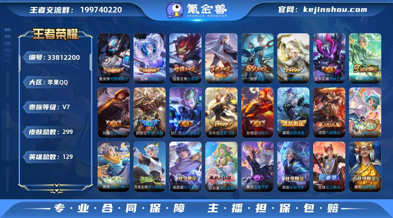 苹果Q-V7-尊贵铂金I段位-128英雄-299皮肤-2典藏皮肤-12传说-78史诗 【英雄全皮】:孙权全皮,金蝉全皮,影全皮 【荣耀典藏】:夏侯惇无限飓风号,貂蝉幻阙歌 【传说皮肤】:桑启鸣野蒿,镜炽阳神光,虞姬启明星使,孙悟空零号赤焰,刘备时之恋人,伽罗太华,百里玄策白虎志,花木兰冠军飞将,李白凤求凰,宫本武藏地狱之眼,孙悟空地狱火,狄仁杰超时空战士 【限定皮肤】:白起狰,蒙犽顽岩魄,姜子牙天穹之誓,狄仁杰阴阳师,虞姬凯尔特女王,赵云皇家上将,嬴政白昼王子,孙尚香蔷薇恋人,庄周蜃楼王,阿轲迷踪丽影,孙膑妖精王,扁鹊炼金王,芈月重明,芈月白晶晶,吕布猎兽之王,周瑜赤莲之焰,元歌云间偶戏,夏侯惇朔风刀,甄姬游园惊梦,曹操烛龙,典韦穷奇,典韦蓝屏警告,马可波罗暗影游猎,狄仁杰魔术师,狄仁杰万华元夜,达摩沙漠行僧,项羽海滩派对,老夫子圣诞老人,老夫子醍醐杖,关羽冰锋战神,程咬金演武夺筹,刘邦夺宝奇兵,韩信逐梦之影,兰陵王驯魔猎人,兰陵王金庭之子,亚瑟狮心王,亚瑟潮玩骑士王,孙悟空零号赤焰,牛魔御旌,后羿如梦令,李元芳银河之约,李元芳云中旅人,虞姬启明星使,钟馗驱傩正仪,杨玉环遇见飞天,女娲朔望之晖,雅典娜单词大作战...