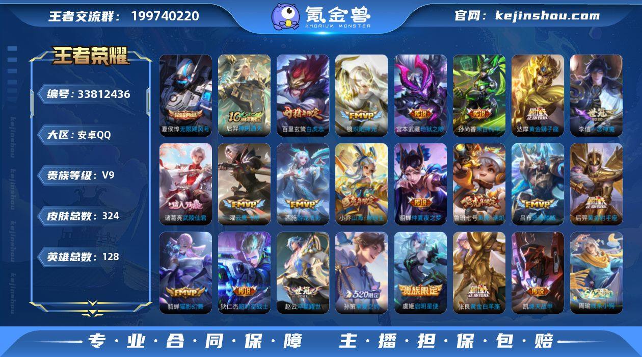 贵族等级9/荣耀典藏数量1/传说皮肤数量22/史诗皮肤数量94/皮肤数量324/英雄数量128/段位永恒钻石/敖隐全皮/空空儿全皮/影全皮/无限飓风号/神树通天/山海·琳琅生/怒海麟威/挚爱之约/寅虎·瑞焰/淬星耀世/游龙清影/绛天战甲/炽阳神光/启明星使/云鹰飞将/一念神魔/猫影幻舞/黄金白羊座/黄金狮子座/白虎志/黄金射手座/武陵仙君/仲夏夜之梦/末日机甲-孙尚香/地狱之眼/超时空战士-狄仁杰/狰(s8)/谪仙醉月/阴阳师/凯尔特女王(s7)/寅虎·御盾/皇家上将/引擎之心/龙胆/热情桑巴/优雅恋人/蔷薇恋人/高山流水/超时空战士-钟无艳/奇幻香踪/夜都怪侠/云间偶戏/无心/朔风刀(s17)/落雪兰心/烛龙(s10)/魔术师/万华元夜(s22)/沙漠行僧(s26)/海滩派对/醍醐杖(s20)/冰锋战神/演武夺筹(s23)/傲雪梅枪/金庭之子(s27)/潮玩骑士王/至尊宝/大圣娶亲/孙行者/御旌(s15)/辉光之辰/云中旅人(s29)/驱傩正仪(s24)/潮玩骑兵/胡桃夹子/饕餮(s9)/原初探秘者(s21)/五谷丰年/青龙志/玄武志/千军破阵(s25)/混沌棋(s18)/大漠名商(s28)/疑决卦(s19)/吟游魔法/李小龙/擒涛扼浪(s31)/御霄(s14)/御銮(s16)/猪悟能/梁祝/玲珑珍味/探海日志(s32)/海盐诗旅(s30)/驭风魔法/流音漫舞/地狱燃心/江河有灵/古海寻踪(s33)/百解令(蒙...