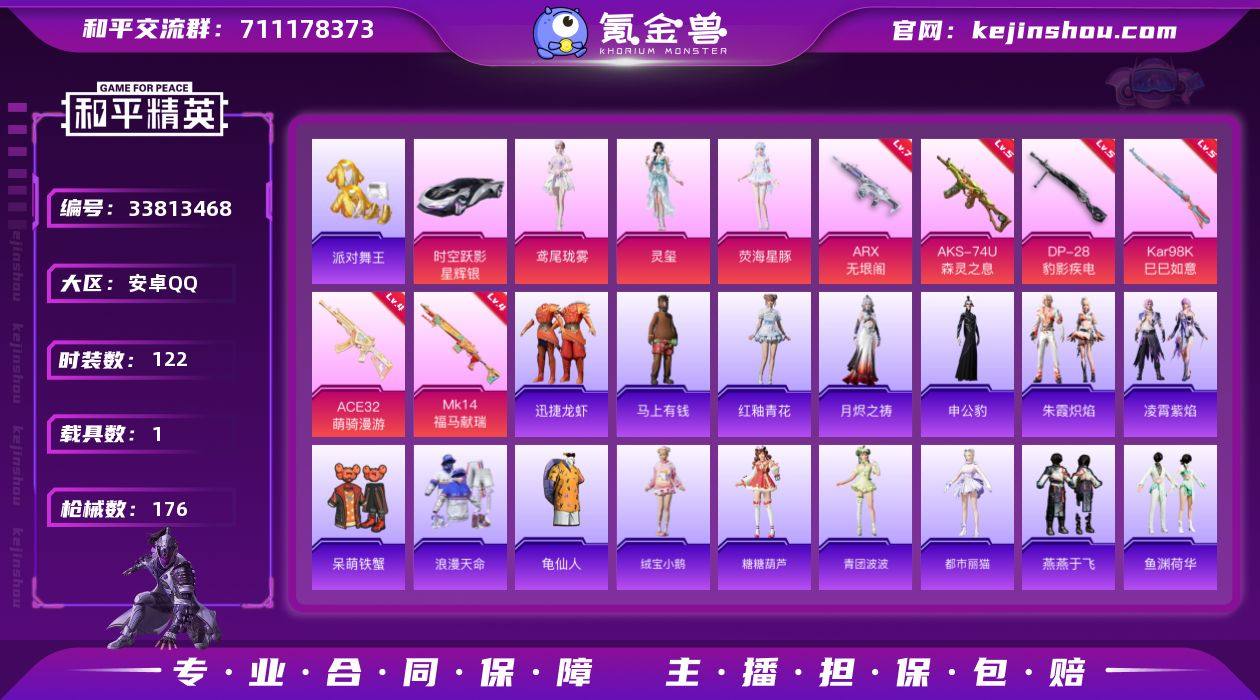 【kyhp2032】安卓 手Q-3粉装-6特效枪-1载具-2粉色飞行器-50880热力值-6王牌印记-122套装-176枪皮 【热门品类】:套装-浪漫天命,套装-派对舞王,套装-龟仙人 【粉色套装】:角色-荧海星豚,角色-灵玺,角色-鸢尾珑雾 【粉色枪皮等级】:ACE32-萌骑漫游(四级),ARX-无垠阁(七级),AKS-74U-森灵之息(五级),Kar98K-巳巳如意(五级),Mk14-福马献瑞(四级),DP-28-豹影疾电(五级) 【粉色载具】:时空跃影(星辉银) 【粉色枪皮】:ACE32-萌骑漫游,ARX-无垠阁,AKS-74U-森灵之息,Kar98K-巳巳如意,Mk14-福马献瑞,DP-28-豹影疾电 【粉色飞行器】:炫彩糖果飞行器,彩虹独角兽飞行器 【粉色降落伞】:星之彼岸降落伞,绯穹魔姬降落伞,异瞳寒姬降落伞,炫彩糖果降落伞,罪夜之冕降落伞 【稀有套装】:套装-龟仙人,套装-绒宝小鹅,套装-炫彩糖果,套装-马上有钱,套装-迅捷龙虾,套装-糖糖葫芦,套装-青团波波,角色-都市丽猫,套装-燕燕于飞,套装-鱼渊荷华,角色-夜瞳黯灵,套装-朱霞炽焰,套装-凌霄紫焰,角色-申公豹,角色-月烬之祷,套装-雨过天青,套装-红釉青花 【稀有枪皮】:AKM-夜灯,AKM-彩虹符号,AKM-影袭,AKM-星之彼岸,AKM-破晓战魂,AKM-龙的传人,M16A4-红色方程...