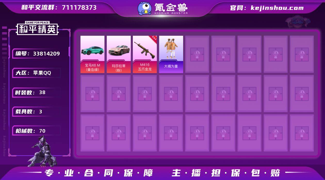 苹果手Q【女娲灵识 3载具】【安卓10年】3粉装-3特效枪-3载具-1粉色飞行器-23336热力值-5王牌印记-38套装-70枪皮 【热门品类】:套装-奇异狩猎者 【粉色套装】:粉装-闲梦青缨,角色-女娲灵识,角色-异瞳寒姬 【粉色枪皮等级】:M416-五爪金龙(六级),Mk14-福马献瑞(一级),DP-28-豹影疾电(五级) 【粉色载具】:玛莎拉蒂Ghibli(粉),宝马X6 M(曼岛绿),保时捷Taycan 旅行版(冰莓粉) 【粉色枪皮】:M416-五爪金龙,Mk14-福马献瑞,DP-28-豹影疾电 【粉色飞行器】:炫彩糖果飞行器 【粉色降落伞】:百万伏特降落伞,神秘黑猫降落伞,幻彩电音降落伞,炫彩糖果降落伞,虹云熊熊降落伞 【稀有套装】:套装-炫彩糖果,套装-星渊小夜曲,角色-紫俏灵猫 【稀有枪皮】:AKM-奇异狩猎者,AKM-百万伏特,SCAR-L-炫彩节奏,SCAR-L-黄金龙骨,M416-神秘黑猫,M416-糯团青竹,GROZA-懵萌河马,QBZ-神秘黑猫,M762-天星战神,M762-奇异狩猎者,Mk47-百万伏特,G36C-懵萌河马,AC-VAL-快闪甜心,UZI-啾咪啾咪,UZI-天降萌叽,UMP45-涂山之恋,汤姆逊-天降萌叽,汤姆逊-奇异狩猎者,P90-快闪甜心,P90-飞驰魅影,Kar98K-梦幻火箭,M24-奇异狩猎者,莫辛纳甘-懵萌河马,M417-惊鸿侠骨,M41...
