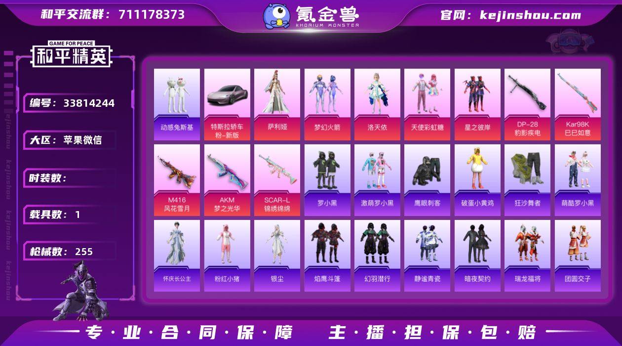 HJ6803 可二 69级 1载具5粉装8特效枪169套装255枪皮 18印记 【3稀有】 AKM-缤纷海域 都市猎人 浪漫天命 【1载具】 特斯拉R沁心粉 【5粉装】 梦幻火箭 萨利娅 天使彩虹糖 洛天依 星之彼岸 【8特效枪】 SCAR-L-锦绣绵绵 (5级) AKS-74U-森灵之息 (5级) Kar98K-巳巳如意 (5级) DP-28-豹影疾电 (5级) AKM-梦之光华 (7级) M416-风花雪月 (7级) Mk14-福马献瑞 (5级) ACE32-萌骑漫游 (4级) 【23热门】 龟仙人 动感兔斯基 鹰眼刺客 激萌罗小黑 罗小黑 暗夜契约 暗影哥特 醒狮腾龙 团圆交子 瑞龙福将 粉红小猪 狂沙舞者 漫步者 青龙圣者 静谧青瓷 破蛋小黄鸡 极速红龙 M416-仓鼠灰灰 AKM-奇异狩猎者 M762-奇异狩猎者 M762-瑞龙福将 M24-奇异狩猎者 S686-奇异狩猎者 【2头盔】 百万伏特头盔 夏日绵绵冰头盔 【4背包】 梦幻火箭背包 甜心宝贝背包 放客神游背包 萌熊伴侣背包