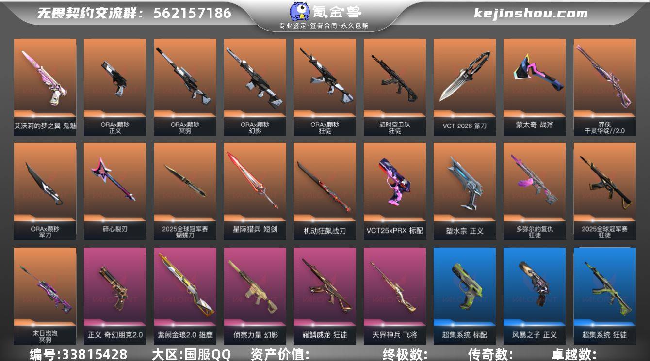 S194693【25冠军套+26年篆刀+ORA-x-颗秒套装】无畏契约/132等级/黄金段位/29英雄/69皮肤/资产41450/已使用R点885/剩余R点15/2025全球冠军赛-狂徒,2025全球冠军赛-蝴蝶刀,多弥尔的复仇-狂徒,超时空卫队-狂徒,侦察力量-幻影,耀鳞威龙-狂徒-,VCT-2026-篆刀,蒙太奇-战斧,碎心裂刃,星际猎兵-短剑,机动狂飙-战刀,末日泡泡-冥驹,千灵华绽//2.0-莽侠,天界神兵-飞将,紫阙金琅//2.0-雄鹿,VCT25-x-PRX-标配,塑水宗-正义,艾沃莉的梦之翼-鬼魅,奇幻朋克//2.0-正义