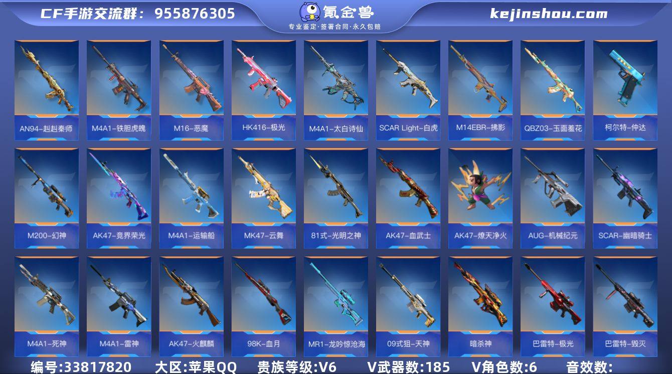 【941969】专家S-6英雄角色数-179英雄武器数 【王者系列】:王者之力,王者之影,王者之心,王者之锋,王者之魂,王者之霆,M4A1-雷霆王者,王者之尊 【热门武器】:M200-权,COP 357-安琪拉,AN94-盖,81式-光明之神,M200-幻神 【角色】:葵,关小雨,零-水下丽影,夏日灵狐-X,炽天使-X,刀锋-枪战王者 【英雄武器】:AK47-火麒麟,AK47-竞界荣光,AK47-燎天净火,AK47-血武士,AK47-谜城烟火,M4A1-雷神,M4A1-死神*2,M4A1-运输船*3,M4A1-夏清,M4A1-雷霆王者,M4A1-太白诗仙,M4A1-铁胆虎魄,SCAR-幽暗骑士,SCAR Light-白虎,SCAR-探星者,SCAR-心动PICK,AN94-赳赳秦师,AN94-盖,AUG-机械纪元,FAMAS-湮灭,M14EBR-拂影,M14EBR-葫芦山庄,M16-恶魔,QBZ03-玉面羞花,HK416-极光,HK417-炎龙铠甲,81式-光明之神,G36-李星云,MK47-云舞,G3A3-衍神兵,FN F2000-十绝阵觉醒,QBZ97-浩瀚征途,AK103-湮灭,SBR-湮灭,AWM-天龙,巴雷特-毁灭,巴雷特-极光*3,暗杀神,M200-幻神,M200-权,09式狙-天神,98K-血月,98K-星神,MR1-龙吟惊沧海,GM6-逆骨,RPK-盘龙,加特林-堡垒,加特林-炼狱,刘易斯-星际方舟觉醒,QBB95-极光,MK5-极光,寒霜烈龙*3,双持斯泰尔-天使...