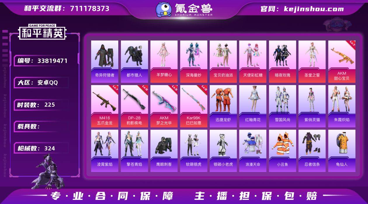 安卓 【素材号 228扭蛋碎片 套装-都市猎人/套装-暗影哥特/角色-羊梦糖心/粉装-宝贝奶油派/粉装-天使彩虹糖/AKM-甜心宝贝(七级)/AKM-梦之光华(五级)/M416-五爪金龙(七级)】手Q-6粉装-5特效枪-0载具-1粉色飞行器-96406热力值-17王牌印记-225套装-324枪皮 【热门品类】:套装-浪漫天命,套装-都市猎人,套装-小丑鱼,套装-奇异狩猎者,套装-忍者信条,套装-龟仙人,套装-暗影哥特 【粉色套装】:粉装-深海曼妙,粉装-宝贝奶油派,粉装-天使彩虹糖,粉装-暗夜玫瑰,角色-圣堂之誓,角色-羊梦糖心 【粉色枪皮等级】:AKM-甜心宝贝(七级),AKM-梦之光华(五级),M416-五爪金龙(七级),Kar98K-巳巳如意(五级),DP-28-豹影疾电(五级) 【粉色枪皮】:AKM-甜心宝贝,AKM-梦之光华,M416-五爪金龙,Kar98K-巳巳如意,DP-28-豹影疾电 【粉色飞行器】:炫彩糖果飞行器 【粉色降落伞】:甜心宝贝降落伞,梦幻火箭降落伞,神秘黑猫降落伞,繁花小夜曲降落伞,四圣焕新降落伞,阿狸红降落伞,星夜魔法师降落伞,镜光幻境降落伞,英伦信使降落伞,异瞳寒姬降落伞,炫彩糖果降落伞,霁蓝缠春降落伞 【稀有套装】:套装-龟仙人,套装-雪国风尚,套装-炫彩糖果,套装-迅捷龙虾,套装-雏菊兔兔,套装...