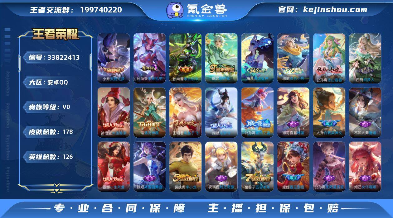 荣耀典藏·天鹅之梦,78款绝版限定/史诗(非卖占比43%)。含白鹤梁神女、凤凰于飞,如梦令、梁祝、霸王别姬、遇见神鹿等大热限定。QQ号为安全9位皇冠老号,带大乔、少司缘区标