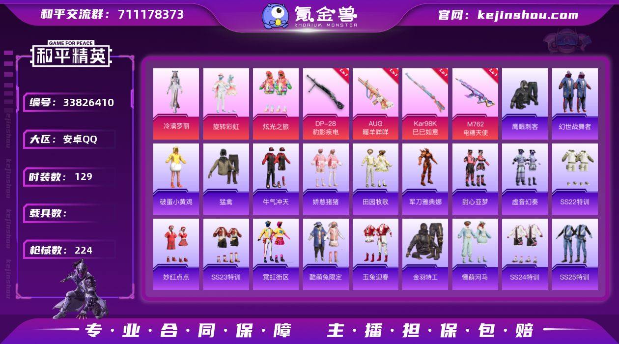 3粉装 7粉枪 129套装 224枪皮 36热门 旋转彩虹 滨海厨神 炫光之旅 幻羽潜行 极速竞梦 阳光火鸡 炫蓝之夏 猎梦纪元 黄色名流 牛气满满 鹤鸣 荣耀 碧波幻想 摩登艾咪 神气柴柴 幻彩翩翩 柠萌假日 王牌教练 青玉碎影 飞驰魅影 龟仙人 音速流光 明鸳圣池 涂山之恋 空岛之星 贵族骑装 酒剑仙 惊鸿侠骨 萌趣咩咩 竞技名士 娇憨猪猪 锦衣飞扬 深蓝色名流 夏雨游龙 蓝调潮人 龙的传人 玉兔迎春 快闪甜心 田园牧歌 春光漫游 轻风白浪 湖蓝色名流 光之冒险 绯格组合 冰冻风暴 完美偶像 千禧之恋 街头潮人 旭日情侣 野性战心 俏皮奶喵 沙漠毒蛇 幻世战舞者 麻辣教官 金耀舞者 冰川特警 沙漠兵团 探宝勇士 酷潮明星 角色-冷漠罗丽 S686-生命誓言 汤姆逊-奇异狩猎者 GROZA-影袭 S1897-炫彩节奏 Mini14-耀粉歌者 汤姆逊-炫彩节奏 Kar98K-影袭 S1897-飞驰魅影 MK20-H-莲影清波 DBS-焰鹰斗篷 S12K-幻世战舞者 DP-28-焰鹰斗篷 M416-红色方程式 汤姆逊-耀粉歌者 S12K-娇憨猪猪 GROZA-懵萌河马 汤姆逊-环太平洋 AUG-耀粉歌者 S12K-玩趣呆呆 QBZ-飞驰魅影 DBS-甜心亚梦 野牛-乌木金纹 M24-影袭 SPAS-12-田园牧歌 QBZ-未来歌姬 Mk47-妙红点点 M249-糯团青竹 DP-28-甜心亚梦 G36C-懵萌河马 AC-VAL-...
