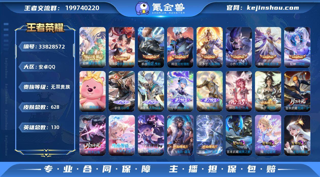 可换绑【精品无双v10号推荐·流光积分7w·有传承位·安琪拉大乔西施全皮··珍品无双貂蝉·多典藏珍品皮·多生肖全套·多限定皮·星穹之声·多天幕星传说·贵族积分44w】 29按键,8星传说,9天幕,1小兵,221戳戳,25王者印记,满级铭文,可二次,安卓Q-V11-628皮肤-7典藏皮肤-1典藏英雄-1珍品无双-5无双-7珍品传说-104传说-202史诗【英雄全皮】:刘禅全皮,扁鹊全皮,宫本武藏全皮,安琪拉全皮,姜子牙全皮,孙权全皮,艾琳全皮,娜可露露全皮,刘备全皮,杨玉环全皮,哪吒全皮,鬼谷子全皮,大乔全皮,苏烈全皮,沈梦溪全皮,狂铁全皮,盾山全皮,猪八戒全皮,嫦娥全皮,敖隐全皮,海月全皮,西施全皮,蒙恬全皮,阿古朵全皮,夏洛特全皮,司空震全皮,云缨全皮,金蝉全皮,赵怀真全皮,戈娅全皮,空空儿全皮,影全皮,少司缘全皮【荣耀典藏】:武则天英雄,小乔天鹅之梦,李白鸣剑曳影,花木兰九霄神辉,貂蝉幻阙歌,韩信弑枪猎影,虞姬神鉴启示录,安琪拉颠倒童话魔镜【珍品无双】:貂蝉馥梦繁花【无双皮肤】:李信问心剑,诸葛亮天机白泽,小乔时之魔女,李白碎月剑心,妲己青丘九尾【珍品传说】:伽罗沧流箭,宫本武藏黑崎一护,暃朽木白哉,安琪拉酷洛米之心,瑶大耳狗之梦,张飞...