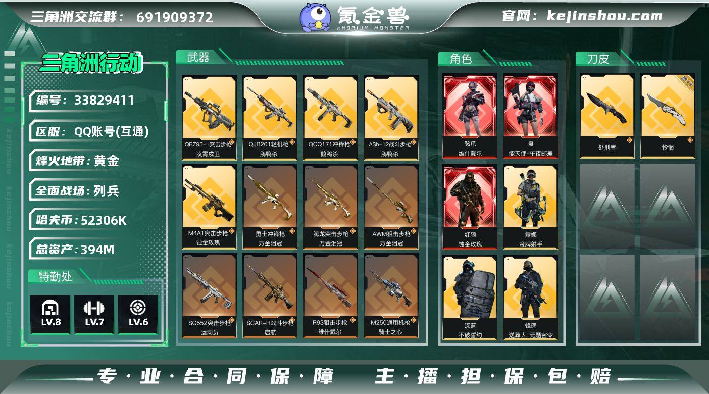 【sjs8943】红狼 女医 小麦红皮 带怜悯 烽火地带段位: 黄金 全面战场段位: 列兵 总资产: 394000000 哈夫币: 52306000 sjs8943 干员外观: 红狼-蚀金玫瑰,蜂医-送葬人·无题密令(S5),蛊-能天使·午夜邮差,深蓝-不破誓约(S6),骇爪-维什戴尔,露娜-金牌射手(S7) 传说武器皮肤: M4A1突击步枪-蚀金玫瑰,近战-怜悯,725双管霰弹枪-送葬人-无题密令,M4A1突击步枪-阿米娅,CAR-15突击步枪-阿米娅,AWM狙击步枪-捞点薯条,腾龙突击步枪-捞点薯条,93R-捞点薯条,AK-12突击步枪-特斯拉线圈,SR-3M紧凑突击步枪-特斯拉线圈,UZI冲锋枪-特斯拉线圈,勇士冲锋枪-能天使-午夜邮差,Vector冲锋枪-能天使-午夜邮差,M250通用机枪-骑士之心,R93狙击步枪-维什戴尔,SCAR-H战斗步枪-启航,ASh-12战斗步枪-鹅鸭杀,QCQ171冲锋枪-鹅鸭杀,QJB201轻机枪-鹅鸭杀,SG552突击步枪-运动员,近战-处刑者,M14射手步枪-蛮荒,QBZ95-1突击步枪-凌霄戍卫,勇士冲锋枪-万金泪冠,腾龙突击步枪-万金泪冠,AWM狙击步枪-万金泪冠 史诗武器皮肤: M700狙击步枪-竞技风,SVD狙击步枪-阿萨拉工艺,QBZ95-1突击步枪-曙光,S12K霰弹枪-曙光,M700狙击步枪-蝮蛇,勇士冲锋枪-深海恐惧,MP5冲锋枪-深海恐惧,SV-98狙击步枪-林中猎手,M250通用机枪-囚徒,SV-9...