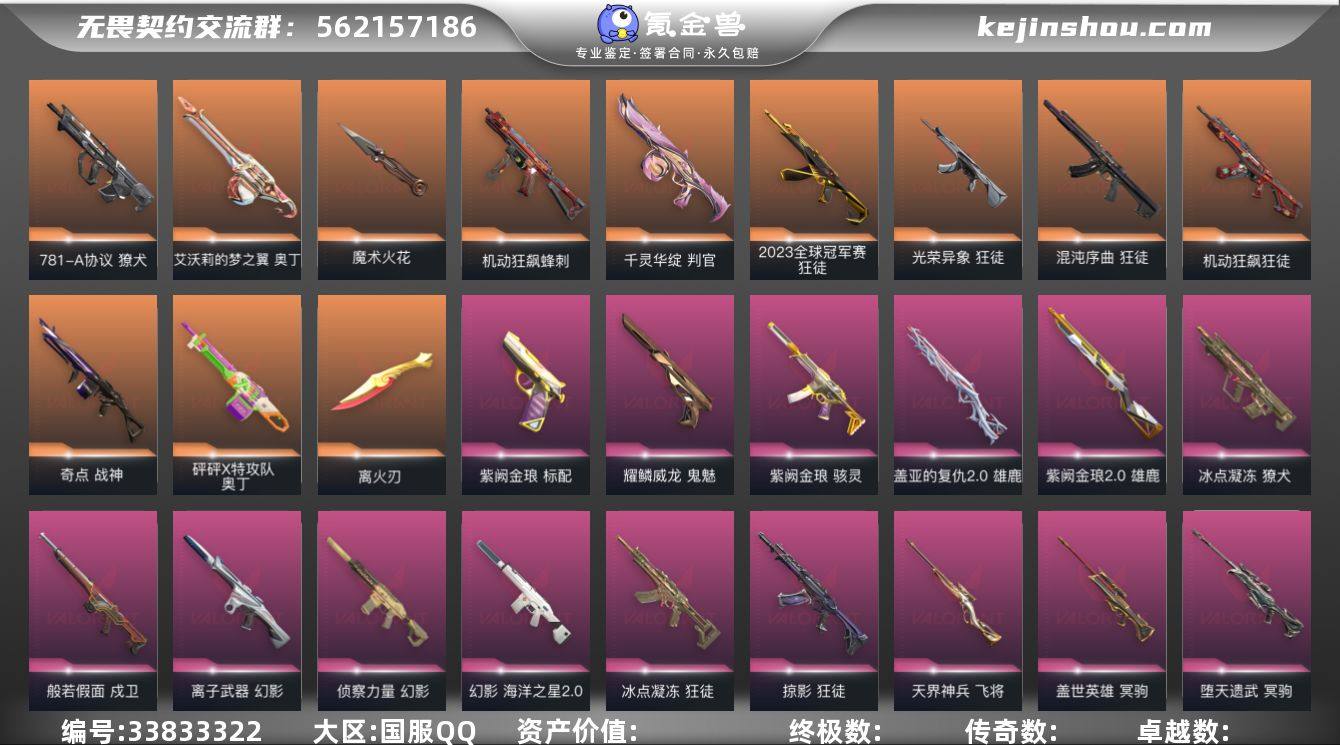 【sf660】【套装】:离火刃套装,无畏启程套装,离火刃套装 【英雄】:幻棱,炼狱,维斯,暮蝶,钛狐,壹决,铁臂,捷风,雷兹,幽影,不死鸟,贤者,猎枭,蝰蛇,零,芮娜,奇乐,尚勃勒,霓虹,斯凯,夜露,星礈,K/O,海神,盖可,黑梦,钢锁 【近战武器】:近战武器-碎心裂刃,近战武器-魔术火花,近战武器-离火刃,近战武器-威龙之刃,近战武器-超能偶像 应援棒,近战武器-超限闪存 匕首,近战武器-合金战车 军刀,近战武器-弧光异彩 军刀,近战武器-荒土机兵 热能刀,近战武器-诡秘蛇影 军刀,近战武器-神圣领域 战刀,近战武器-日耀风暴 遗器,近战武器-阿特拉斯指挥部 甩棍,近战武器-星际猎兵 短剑,近战武器-魔术火花 【狂徒】:狂徒-2025全球冠军赛,狂徒-2023全球冠军赛,狂徒-混沌序曲,狂徒-机动狂飙,狂徒-塑水宗,狂徒-光荣异象,狂徒-冰点凝冻,狂徒-掠影,狂徒-超能偶像,狂徒-弧光异彩,狂徒-荒土机兵,狂徒-诡秘蛇影 【幻影】:幻影-离子武器,幻影-侦察力量,幻影-海洋之星//2.0,幻影-超限闪存,幻影-合金战车,幻影-噬源兽防卫工程,幻影-神圣领域,幻影-聚合之力,幻影-纳米打击,幻影-末日之翼 【戍卫】:戍卫-般若假面,戍卫-超能偶像,戍卫-彩梦之...