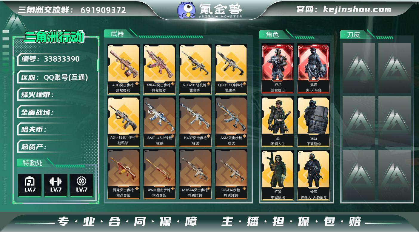 实名: 不可修改 干员外观: 蜂医-送葬人·无题密令(S5),露娜-黑·天际线,深蓝-不破誓约(S6),红狼-电锯惊魂,威龙-凌霄戍卫,蛊-不羁人生 传说武器皮肤: Vector冲锋枪-狩猎时刻,G3战斗步枪-狩猎时刻,M16A4突击步枪-狩猎时刻,AWM狙击步枪-捞点薯条,腾龙突击步枪-捞点薯条,ASh-12战斗步枪-鹅鸭杀,QCQ171冲锋枪-鹅鸭杀,QJB201轻机枪-鹅鸭杀,SMG-45冲锋枪-锦绣,K437突击步枪-锦绣,AKM突击步枪-锦绣,MK47突击步枪-悠然茶歇,AUG突击步枪-悠然茶歇 亮点: hf16649总资产312m纯币180m+s9赛季3x3安全箱+黑天际线全套+凌霄戍卫全套+不羁人生全套+电锯惊魂红狼+锦绣全套+悠然茶歇全套+鹅鸭杀全套+狩猎时刻全套+捞点薯条全套+s5s6赛季通行证+烽火等级60+特勤部门等级可以+永久包赔
