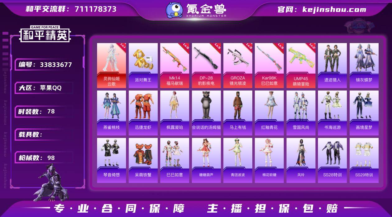 【1级云歌 金鞋 满地铁天赋】YXc30929-【无二次协助处理】【因赛季更新游戏段付以上号为准!】 苹果Q-1红装3稀有5特效枪5热门78套装98枪皮 5印记 历史传奇王牌15星 【1红装】 灵驹仙姬-云歌 (1级) 【3稀有】 AKM-缤纷海域 派对舞王 派对舞王(金靴子) 【5特效枪】 Kar98K-巳巳如意 (5级) DP-28-豹影疾电 (5级) GROZA-镜光银凌 (5级) Mk14-福马献瑞 (5级) UMP45-萌骑冒险 (2级) 【5热门】 呆萌铁蟹 漫步者 破蛋小黄鸡 极速红龙 弄潮海豚