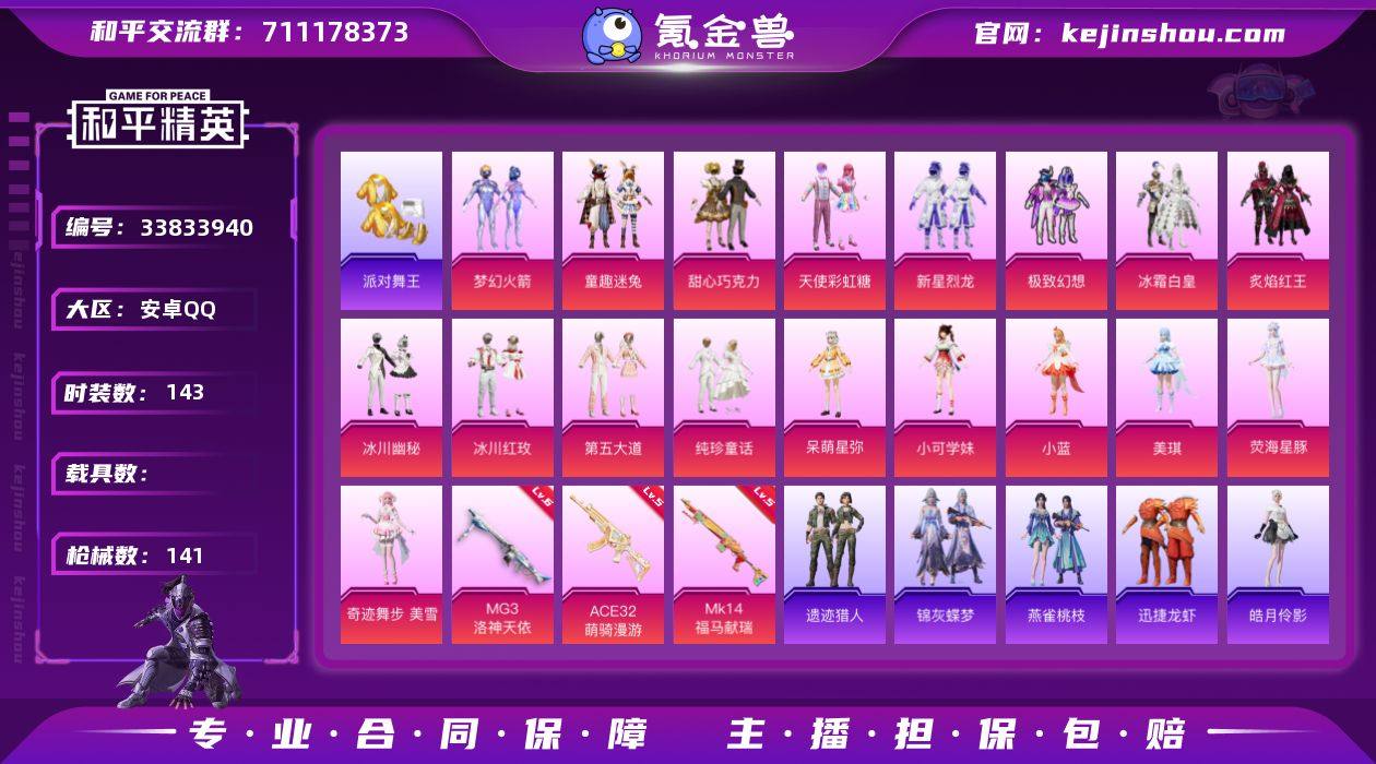 YZJ17518-不可二次-安卓Q-3稀有18粉装3特效枪11热门【精品公主号 多款漂亮粉裙 双字ID:厌很 梦幻火箭 巧克力 童趣迷兔 第五大道 呆萌 小可 小蓝 美琪 彩虹糖 荧海星豚 小白龙 金鞋 奶油梦幻熊 暮夜私语 奶油庭院 青涩年华 晶辉守护 蓝螳螂 粉螳螂 红眼罩 狂沙 天命 菠萝头 洛神天依背包头盔 7款飞行器】143套装139枪皮 49227热力值 7印记 历史卓越王牌11星 【3稀有】 浪漫天命 派对舞王 派对舞王(金靴子) 【18粉装】 梦幻火箭 小蓝 美琪 奇迹舞步美雪 天使彩虹糖 甜心巧克力 荧海星豚 呆萌星弥 小可学妹 纯珍童话 第五大道 新星烈龙 极致幻想 冰川幽秘 童趣迷兔 冰霜白皇 炙焰红王 冰川红玫 【3特效枪】 MG3-洛神天依 (6级) Mk14-福马献瑞 (5级) ACE32-萌骑漫游 (5级) 【11热门】 8号机 Mark.06 龟仙人 青涩年华 晶辉守护 鹰眼刺客 恶魔喵喵 暗影哥特 狂沙舞者 漫步者 破蛋小黄鸡 【1飞行器】 天之羽翼飞行器 【1头盔】 童趣迷兔头盔 【1背包】 甜心宝贝背包 营地ID:956143979