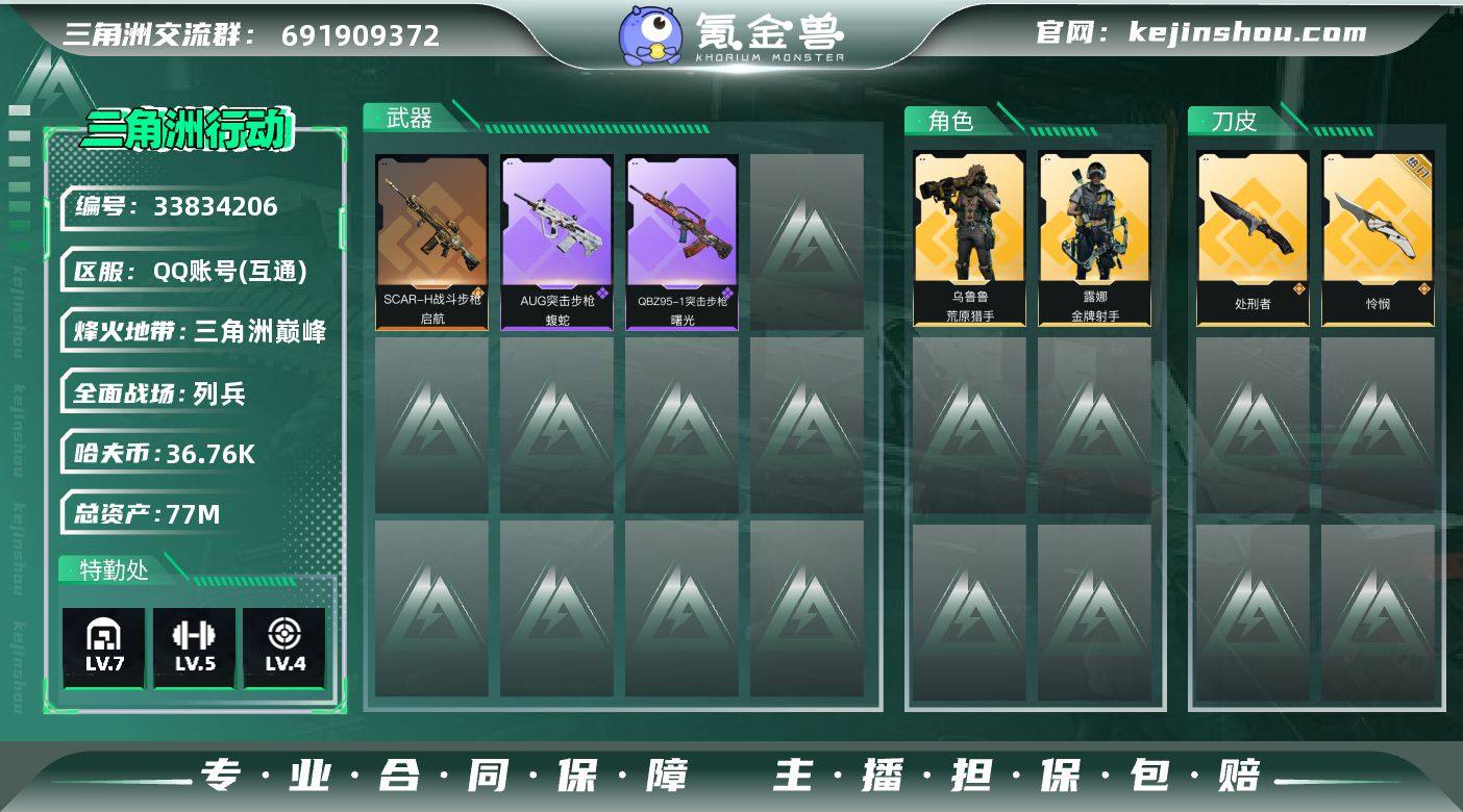 DSJZ1766【特价号总价值77M- 热门双刀皮怜悯 处刑者】-三端互通-总价值77M-哈夫币36,765.69-烽火地带等级60-烽火地带段位三角洲巅峰【干员皮肤】乌鲁鲁-荒原猎手 露娜-金牌射手【近战武器】黑鹰 怜悯 处刑者【枪皮】AKM突击步枪-噬菌体 腾龙突击步枪-古铜 SG552突击步枪-巨兽 M4A1突击步枪-粉色涂装 M4A1突击步枪-高雅黑 M4A1突击步枪-海色 M4A1突击步枪-繁盛 AKM突击步枪-肃杀 QBZ95-1突击步枪-高雅黑 QBZ95-1突击步枪-海浪 QBZ95-1突击步枪-海色 QBZ95-1突击步枪-2026 QBZ95-1突击步枪-曙光 AKS-74U突击步枪-磐石 AKS-74U突击步枪-冰天雪地 ASh-12战斗步枪-繁盛 K416突击步枪-几何迷彩 K416突击步枪-重击 K416突击步枪-一帆风顺 K416突击步枪-阿萨拉特攻 K416突击步枪-冬日风情 K416突击步枪-腊梅 K416突击步枪-行动记录 M16A4突击步枪-高雅黑 AUG突击步枪-浅蓝涂装 AUG突击步枪-蝮蛇 AUG突击步枪-甜心子弹 AUG突击步枪-悠然茶歇 M7战斗步枪-红色涂装 M7战斗步枪-黑巧甜心 M7战斗步枪-重击 M7战斗步枪-百步穿杨 SG552突击步枪-浅蓝涂装 SG552突击步枪-海浪 SG552突击步枪-狂欢 SG552突击步枪-2026 SG552突击步枪-马年新春 SG552突击步枪-贴花艺术 SG552突击步枪-哈夫克警备...