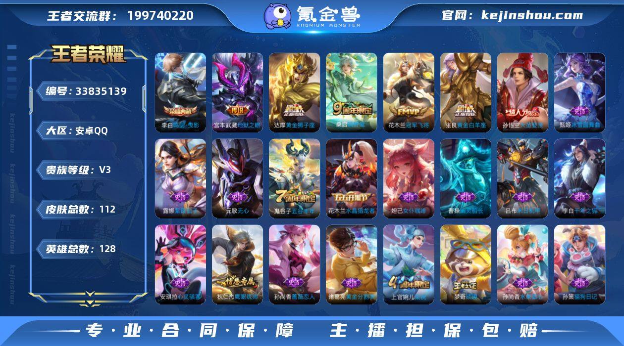 V3 1典藏 112皮肤 128英雄 【1水晶】李白-鸣剑·曳影【27史诗】元歌-无心,鬼谷子-五谷丰年,安琪拉-心灵骇客,曹操-幽灵船长,妲己-女仆咖啡,妲己-魅力维加斯,狄仁杰-鹰眼统帅,貂蝉-圣诞恋歌,宫本武藏-鬼剑武藏,花木兰-水晶猎龙者,李白-千年之狐,露娜-紫霞仙子,吕布-末日机甲,上官婉儿-梁祝,沈梦溪-月团寄思,孙策-猫狗日记,孙尚香-水果甜心,孙尚香-蔷薇恋人,孙悟空-大圣娶亲,王昭君-偶像歌手,亚瑟-心灵战警,嬴政-摇滚巨星,张飞-乱世虎臣,甄姬-冰雪圆舞曲,钟无艳-王者之锤,诸葛亮-黄金分割率,梦奇-顽趣