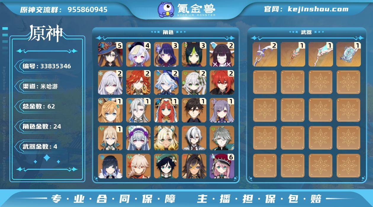 便宜急出个人完全号可小刀,活跃1000+天,成就差不多1600,所有国家地图全开跟跑月月妈神瞳全齐,各种阴间成就和宝箱全齐,钓鱼种地大伟哥地脉成就都已达成,世界boss全过,配队完美新老深渊通杀,神明齐全人权卡也齐有核心命座4星专辅也满命基本上都培养好了,新手和不想肝的玩家上手爽玩!!!