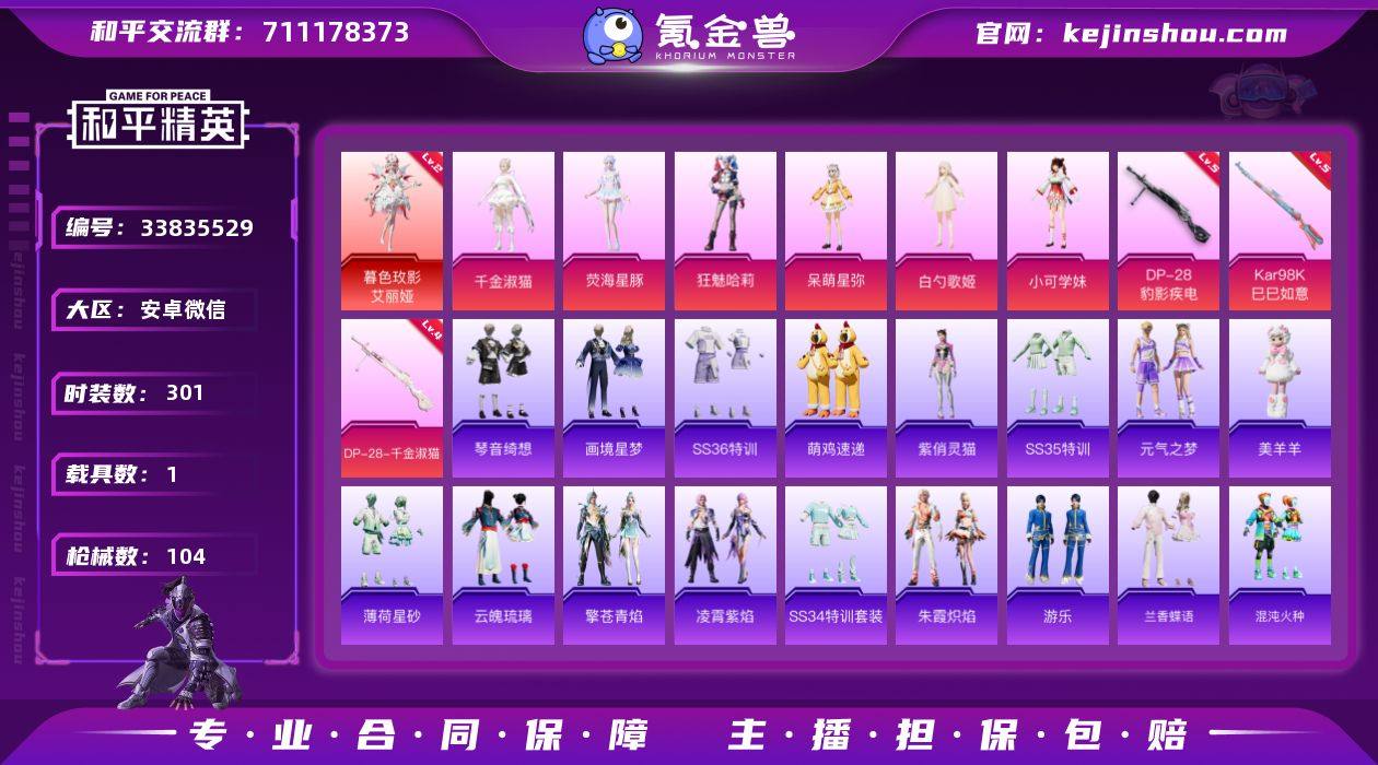DB2891 安卓V 可改实名可转区 1红装-6粉装-4特效枪-1载具-10地铁天赋点 2级艾丽娅 狂魅哈莉 白勺歌姬 千金淑猫 荧海星豚 呆萌星弥 DP28豹影疾电5级-Mk14福马献瑞5级-Kar98K巳巳如意5级-DP28千金淑猫4级 暮色幽蹄-暮色之舞飞行器1级 安卓微信-4王牌印记-1红装-6粉装-4特效枪-1载具-32858热力值-81套装-104枪皮-1卓越印记 【1红装】暮色玫影-艾丽娅/2级 【6粉装】角色-荧海星豚,角色-千金淑猫,角色-小可学妹,角色-呆萌星弥,角色-狂魅哈莉,角色-白勺歌姬 【4特效枪】DP-28-豹影疾电/5级,Mk14-福马献瑞/5级,Kar98K-巳巳如意/5级,DP-28-千金淑猫/4级 【1稀有载具】暮色幽蹄 【81稀有时装】艾丽娅/2级,白勺歌姬,狂魅哈莉,小可学妹,千金淑猫,荧海星豚,呆萌星弥,SS38特训,粉雾星云,异域银装,都市丽猫,摩登魅猫,白糯汤圆,大橘大利,战术大师,紫俏灵猫,瑰石海星,听雨铃兰,马上有钱,巳巳如意,元素星魂,彩虹兔,琴音绮想,乐音,极速光影,霓虹热舞,雪绒豹,画境星梦,朱霞炽焰,游乐,美羊羊,凌霄紫焰,云魄琉璃,无面战甲,擎苍青焰,萌鸡速递,元气之梦,书海巡游,混沌火种,薄荷星砂,云朵鹅,顶瓜瓜,兰香蝶语,青翼流星,SS35特训,SS31特训,SS33特训,SS32特训,SS36特训,白熊同盟,SS37特训,猎鹰,黄色运动,...