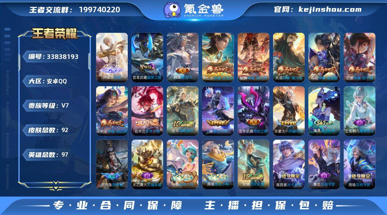 【高质量推荐·满马年限定·无相·幽冥之眼·韩信踏浪归·花木兰异界灵契·澜逐花归海·灼幽烈阳·无二次包过】YXw23336-安卓Q-97英雄-92皮肤-3王者印记-70铭文-贵族积分2w【贵族7】【1无双·1星传说·12传说·18按键】【因赛季更新游戏段付以上号为准!】 【英雄全皮】:敖隐全皮 【无双皮肤】:孙悟空无相 【星元皮肤】:宫本武藏幽冥之眼 【传说皮肤】:韩信踏浪归,云缨神骥越千峰,关羽神骥镇沧海,朵莉亚神骥鸣幻洲,狄仁杰神骥赴朔漠,貂蝉神骥聚万邦,马超神骥逐星野,花木兰异界灵契,后羿神树通天,澜逐花归海,东皇太一灼幽烈阳,宫本武藏地狱之眼 【限定皮肤】:暃埋骨钱,狄仁杰阴阳师,赵云皇家上将,元歌无心,狄仁杰魔术师,项羽海滩派对,米莱狄胡桃异想国 【赛季限定】:甄姬逆浪荇歌,亚瑟荣光之誓 【战令限定】:米莱狄胡桃异想国,周瑜百相守梦,孙策百相守梦,莱西奥光弋星穹,明世隐往忆晖光,周瑜线条小狗,小乔线条小狗 【史诗皮肤】:上官婉儿春霖将至,太乙真人瓦猫非猫,明世隐百晓客,周瑜线条小狗,小乔线条小狗,女娲万灵启世,莱西奥光弋星穹,黄忠百相守梦,周瑜百相守梦,狂铁龙之律动,赵怀真器灵浮梦炉,暃埋骨钱,元歌无心,弈星滕王阁序,米莱狄胡...