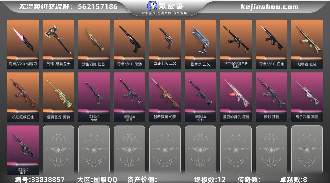 【PTWW3636】LV等级289/皮肤总价值29800/段位黄金/总皮肤数量63/刀皮数量4/枪皮数量59/套装数量2/具体详情请看图/奇点//2.0套装/掠影2.0套装/幻棱/炼狱/维斯/暮蝶/钛狐/壹决/铁臂/捷风/雷兹/幽影/不死鸟/贤者/猎枭/蝰蛇/零/芮娜/奇乐/尚勃勒/霓虹/斯凯/夜露/星礈/K/O/海神/盖可/黑梦/钢锁/影钩/蝴蝶刀-奇点//2.0/战锤-钢轨卫士/匕首-沙尘幻旅/2025全球冠军赛 狂徒/狂徒-归零者/狂徒-机动狂飙/狂徒-奇点//2.0/狂徒-掠影/狂徒-盖亚的复仇/狂徒-钢轨卫士/狂徒-沙尘幻旅/幻影-般若假面/幻影-掠影2.0/幻影-战术小伙伴/戍卫-钢轨卫士/戍卫-萌彩剪影/獠犬-胡桃狂想/獠犬-战术小伙伴/冥驹-偃月苍龙/冥驹-离子武器/冥驹-胡桃狂想/飞将-沙尘幻旅/飞将-光导纤维/战神-萌彩剪影/奥丁-掠影2.0/奥丁-战术小伙伴/判官-萌彩剪影/骇灵-掠影2.0/骇灵-沙尘幻旅/骇灵-无限竞技/骇灵-光导纤维/蜂刺-胡桃狂想/蜂刺-战术小伙伴/标配-超能偶像/标配-钢铁意志/标配-光导纤维/标配-决意/正义-塑水宗/正义-西部未来/正义-超限闪存/正义-沙尘幻旅/正义-复古浪潮/正义-游戏结束/鬼魅-奇点//2.0/鬼魅-掠影2.0/鬼魅-流星兵团/鬼魅-诡秘蛇影/鬼魅-光导纤维/鬼魅-胡桃狂想/鬼魅-灵魂消声者/鬼魅-星云暗涌/狂怒-...
