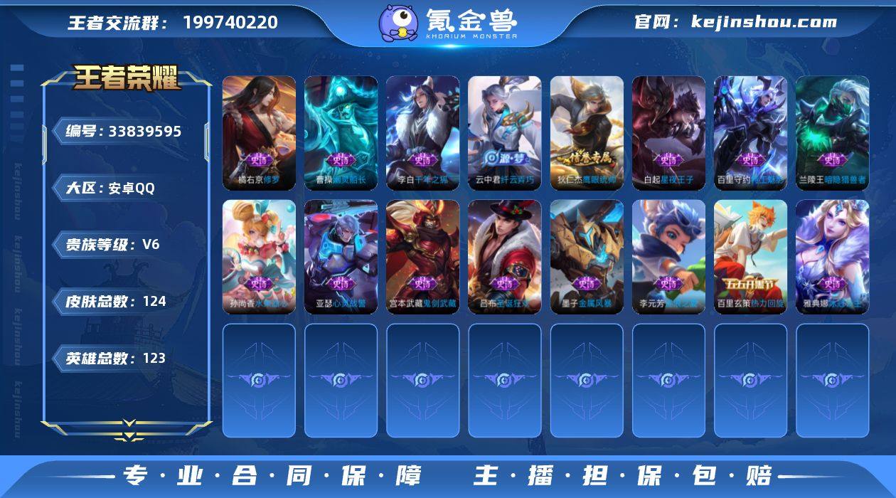 V6 2珍品传说 2传说 123英雄 124皮肤 可二次 可修改实名 男号