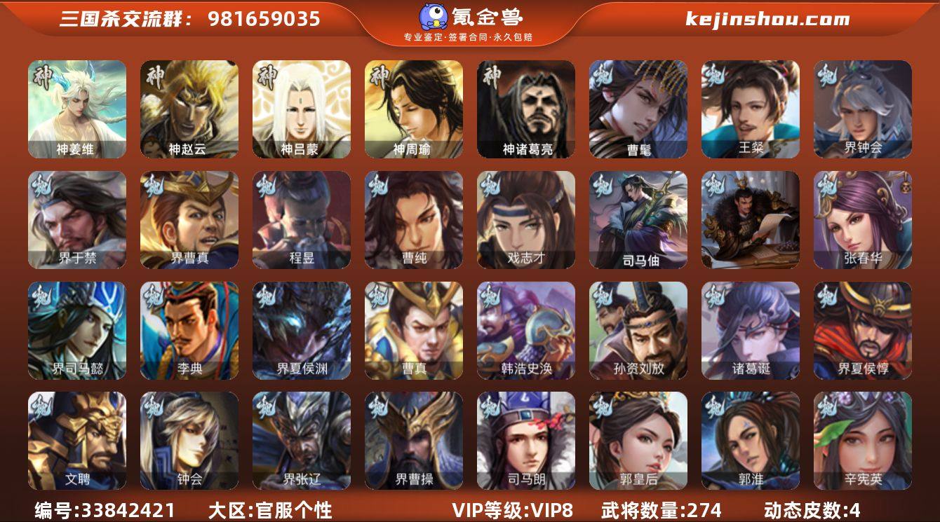 官阶:骠骑将军;VIP等级:VIP8;史诗武将数量:15;动态皮肤数量:4;武将总数:274;史诗宝珠数量:8;将魂数量:7871;神将:3;魏国史诗武将:0;蜀国史诗武将:1;吴国史诗武将:1;群史诗武将:3