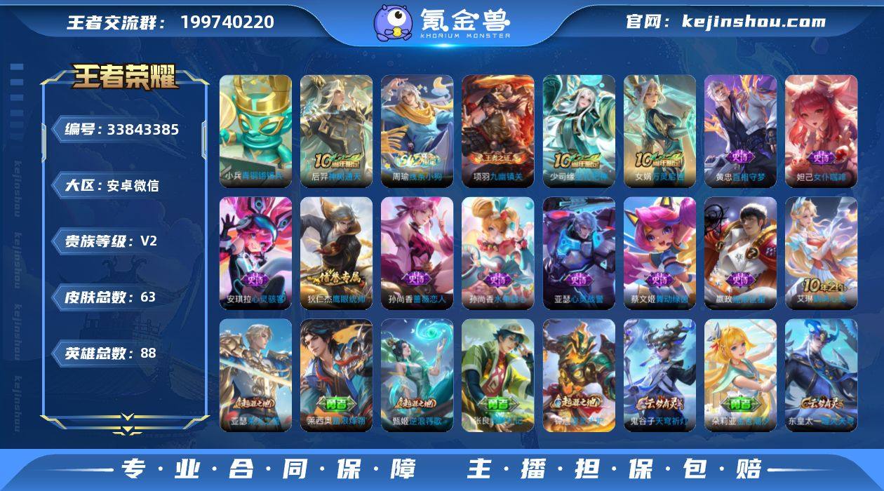 王者荣耀安卓微信区女号 63皮肤 14星传说 13史诗 15勇者 信誉14 王者印记14 游走10段 亲密度1842 账号安全 支持换绑手机号 价格可聊
