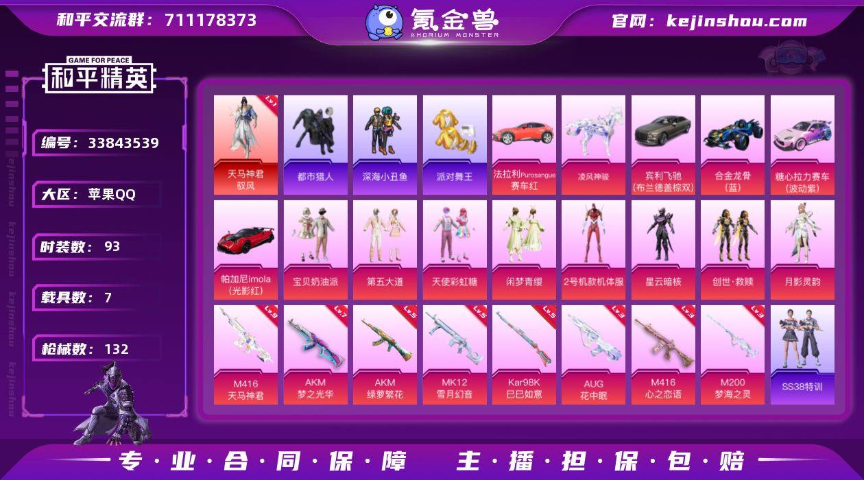 1红装9粉装12特效枪6载具 1级红 红螳螂 9级天马神君m4 都市 金鞋 天命 哥特 小丑鱼 【和平精英】9粉装,12特效枪,6载具,历史最高段位:超级王牌16星 王牌印记11次 热力值:86201,182套装,237枪械,321装备,162战备;套装:天马神君-驭风,套装-宝贝奶油派,套装-天使彩虹糖,套装-梦幻火箭,角色-2号机款机体服,套装-第五大道,套装-闲梦青缨,角色-星云暗核,套装-创世·救赎,角色-月影灵韵,套装-特训学院,套装-猎鹰,套装-青年教官,套装-橘黑制服,套装-红色运动,套装-黄色运动,套装-蓝色运动,套装-黄色伏地魔,套装-白色伏地魔,套装-黑色伏地魔,套装-竞技名士,套装-深蓝色名流,套装-酒红色名流,套装-湖蓝色名流,套装-黄色名流,套装-猛禽,套装-长空猛禽,套装-漫步者,套装-霸义无双,套装-黎明保卫者,套装-海岛探路者,套装-旭日情侣,套装-冷焰舞者,套装-灼焰舞者,套装-都市猎人,套装-浪漫天命,套装-特战装甲,套装-战地督导,套装-特殊使命,套装-鹰眼刺客,套装-冰冻风暴,套装-冷酷挑战者,套装-完美偶像,套装-人气偶像,套装-特战英豪,套装-街头潮人,套装-蓝彩潮人,套装-魅力单车,套装-绮丽涂鸦,套装-耀眼新星,套装-狂战萌兔,套装-雪...