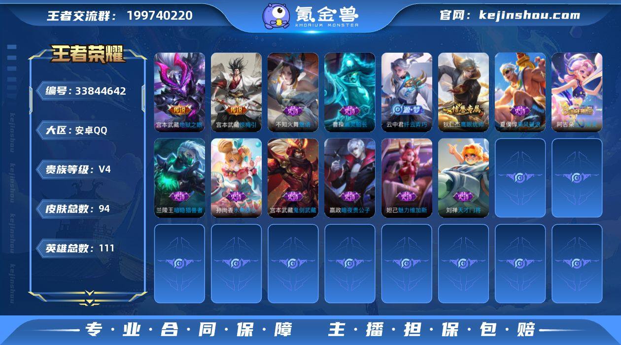 V4 2传说 111英雄 94皮肤 可二次 可修改实名 男号