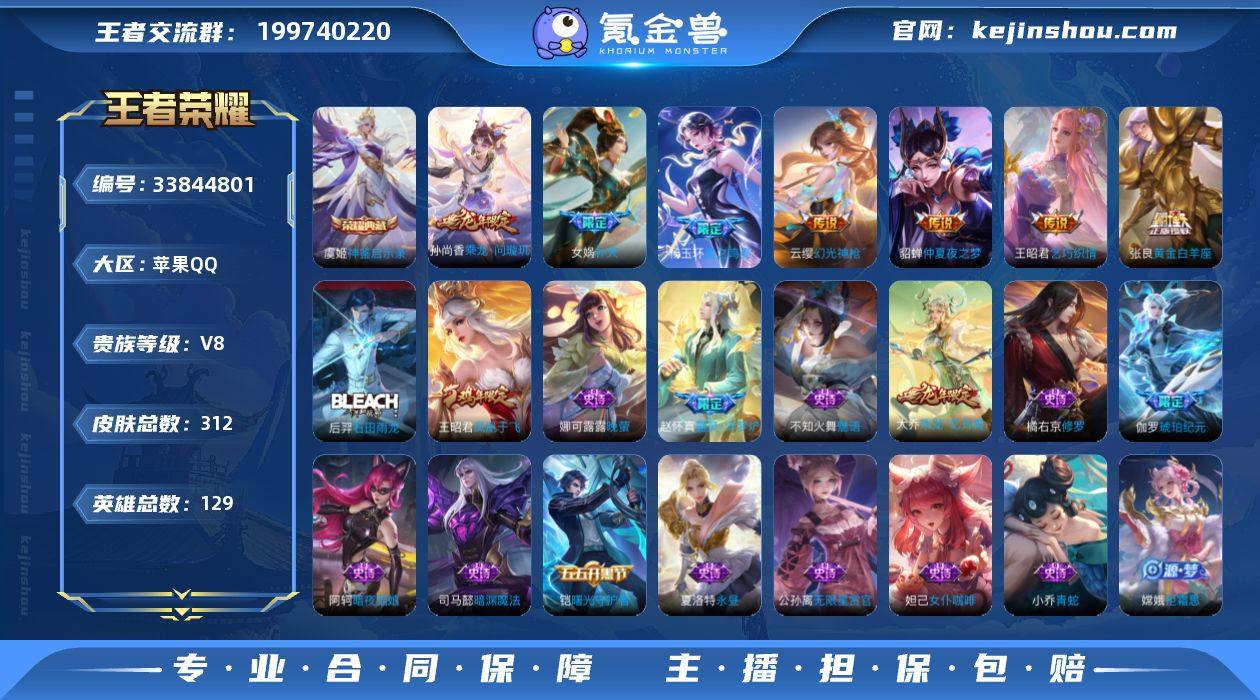 [19128825]V8 1典藏 17传说 129英雄 312皮肤 可二次 可修改实名 男号 【英雄全皮】敖隐全皮,空空儿全皮,鬼谷子全皮,杨玉环全皮,大禹全皮 【稀有英雄】敖隐(小龙人),大司命,嬴政(始皇帝),韩信(韩跳跳),夏洛特(夏师傅),艾琳,橘右京(橘子),娜可露露(鸟人),不知火舞,赵云,金蝉(唐僧),戈娅 【荣耀水晶】神鉴启示录 【传说皮】神骥·鸣幻洲,貂蝉曦玄引,乘龙·问璇玑(孙尚香年限),星之鸣奏,幻光神枪,神树通天,黄金白羊座,仲夏夜之梦(大飞蛾),末日机甲-孙尚香(绿蚂蚱),乞巧织情,澜逐花归海 【珍宝阁皮】优雅恋人,女武神,玩趣恶龙 【赛季/战令皮】噬灭天穹(s37),古海寻踪(s33),海盐诗旅(s30),擒涛扼浪(s31),潮玩骑兵,探海日志(s32),驭风魔法,玲珑珍味,顽趣-梦奇,剑破天穹(s35),天穹祈灯(s34),天穹之誓(s36),炼金王(s6),凯尔特女王(s7),狰(s8),饕餮(s9),烛龙(s10),重明(s11),穷奇(s12),御狮(s13),御霄(s14),御旌(s15),御銮(s16),朔风刀(s17),混沌棋(s18),疑决卦(s19),醍醐杖(s20),原初探秘者(s21),万华元夜(s22),演武夺筹(s23),驱傩正仪(s24),千军破阵(s25),神迹守卫-钟馗,狮舞东方,西部大镖客-猪八戒,暗影游猎(游乐娃子),沙漠行僧(s26),金庭之子(s27),大漠名商(s28),云中旅人(s29) 【史...
