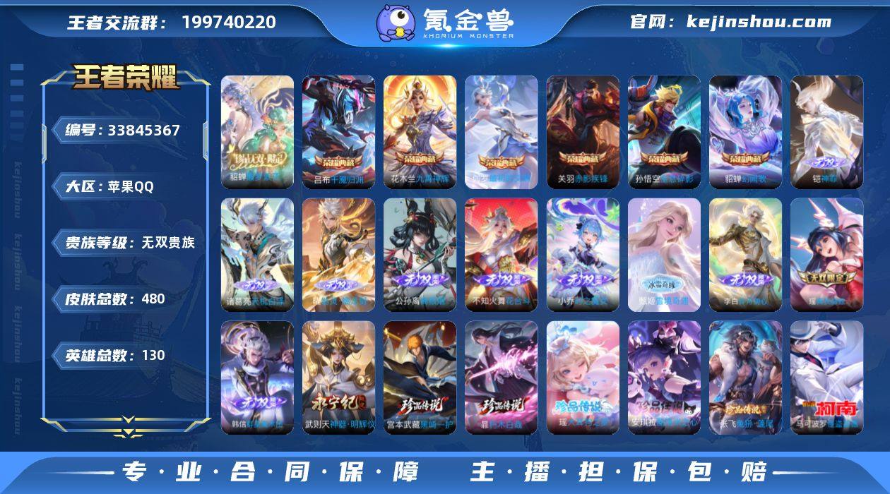 顶级账号 苹果Q-V11-最强王者段位-129英雄-480皮肤-6典藏皮肤-1典藏英雄-1珍品无双-11无双-9珍品传说-54传说-152史诗 【英雄全皮】:元歌全皮,孙权全皮,苍全皮,亚连全皮,大司命全皮,敖隐全皮,西施全皮,司空震全皮,赵怀真全皮,戈娅全皮,空空儿全皮,姬小满全皮,少司缘全皮 【荣耀典藏】:武则天英雄,孙悟空全息碎影,花木兰九霄神辉,关羽赤影疾锋,貂蝉幻阙歌,伽罗最初的交响,吕布千魇归渊 【珍品无双】:貂蝉馥梦繁花 【无双皮肤】:铠神罪,诸葛亮天机白泽,曜器灵螭龙剑,甄姬雪境奇遇,公孙离离恨烟,不知火舞花合斗,韩信群星魔术团,小乔时之魔女,李白碎月剑心,瑶真我赫兹,武则天神器明辉仪 【珍品传说】:宫本武藏黑崎一护,暃朽木白哉,安琪拉酷洛米之心,瑶大耳狗之梦,张飞兔狲蓬尾,嫦娥器灵落星盏,孙策时之奇旅,鲁班七号江户川柯南,马可波罗怪盗基德 【传说皮肤】:云缨神骥越千峰,杨戬纵目迁山,后羿神树通天,曹操万灵伏威,干将莫邪千山共赴,元歌诡秘之主,大司命死亡执政官,司马懿九山相柳,公孙离云诺千山,西施续相思,杨玉环星之鸣奏,后羿千劫归真,司空震愿照山河定,女娲愿照千秋盛,妲己愿照众生和,澜愿照九州拓,蔡文姬愿照...