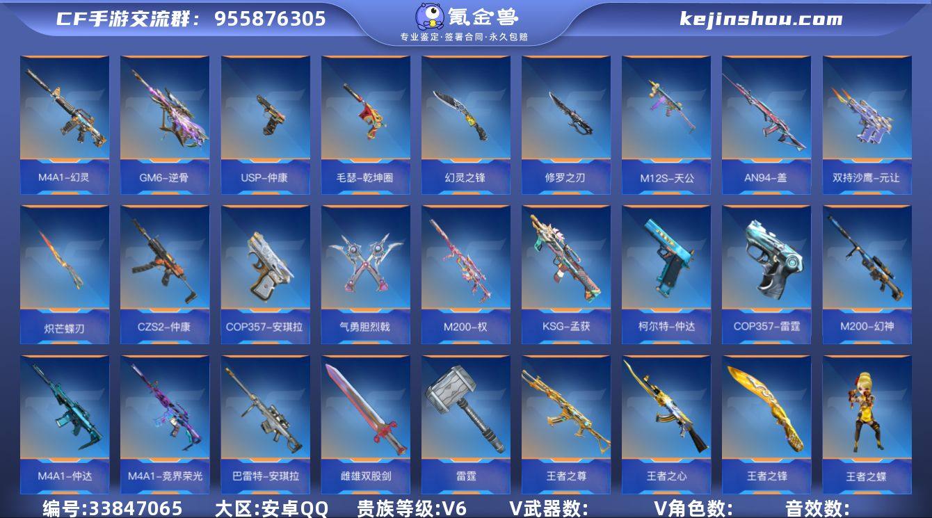 ✨一线王者三国爆破号!21王者武器(1王者雷)雷霆锤+冰皮王者新星+冰皮王竞+权(江东骇虎枪线)2COP+王锋+仲达+多三国+5极光+4烈+4屠龙多近战+云悠悠星宫紫✨『260V-显血戒-VIP6-115级』 【王者武器】:/王者新星-冰霜奇迹/王者之竞-冰霜奇迹/王者之心/王者之尊/王者之狱-冰霜奇迹/王者之蝶/王者之魂-HeartShot/王者之锋/ 【热门武器】:/M200-权/M4A1-仲达/AN94-盖/M200-幻神/GM6-逆骨/CZS2-仲康/M12S-天公/KSG-孟获/M4A1-竞界荣光/M4A1-幻灵/巴雷特-极光*5/巴雷特-安琪拉/寒霜烈龙*4/ 【副武器】:/COP357-雷霆/COP357-安琪拉/COP357/毛瑟-乾坤圈/USP-仲康/双持沙鹰-元让/柯尔特-仲达/ 【近战】:/雷霆/雌雄双股剑/气勇胆烈戟/麒麟刺-星空/炽芒蝶刃/修罗之刃/幻灵之锋/屠龙*4/ 【角色】:/云悠悠-星宫紫/ 【其他】:/3语音卡/8音效卡(心+幻神)/4消灭音效/狙击枪线(冰霜+过载+江东骇虎)/