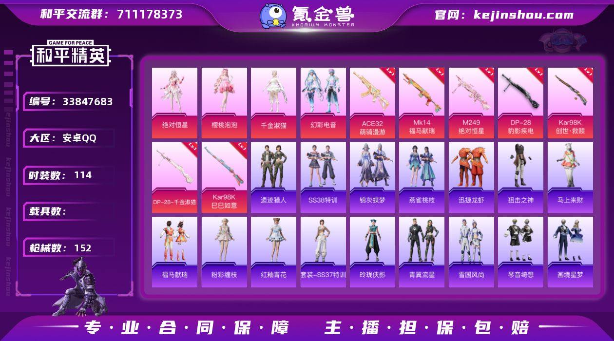 【M249满级绝对恒星7特效枪4粉装 秒换绑不用等】 安卓Q区-48225热力值-114套装-152枪皮 【4粉装】 绝对恒星 角色-樱桃泡泡 幻彩电音 角色-千金淑猫【7特效枪】 Mk14-福马献瑞(5级) ACE32-萌骑漫游(5级) M249-绝对恒星(7级) DP-28-千金淑猫(4级) Kar98K-创世·救赎(7级) Kar98K-巳巳如意(5级) DP-28-豹影疾电(5级)【201热门】 SS27特训 SS25特训 M762-天降萌叽 M762-彩虹符号 M249-彩虹符号 MG3-幻世战舞者 AKM-春暖花开 M416-蓝色火焰 破蛋小黄鸡 长空猛禽 特训学院 青涩时光 魅力单车 蓝色运动 酷萌兔限定 黄色运动 黄色伏地魔 红色运动 黑色伏地魔 海岛探路者 纯真浪花 S1897-糯团青竹 MK20-H-樱桃泡泡 AA12-G-雨过天青 M24-樱桃泡泡 沙漠之鹰-雨过天青 DBS-绛云霓裳 情公主 平底锅-画境星梦 超感刻度 P90-紫矿核心 GROZA-紫矿核心 玲珑侠影 AWM-暮色玫影 M16A4-雨过天青 AC-VAL-玩趣呆呆 顶瓜瓜 Vector-荒原烈焰 雨过天青 冰河战士 MG-36-薄荷星砂 GROZA-福马献瑞 恋语绒绒 SS34特训 玩偶服-美羊羊 朱霞炽焰 蜜獾-鸡智如我 撬棍-冰晶雪宝 创世·追猎 福马献瑞 大橘大利 凌霄紫焰 龙魂突击队 SS29特训 破片手榴弹-爆破雪人 SS30特训 ACE32-冰晶雪宝 擎苍青焰 青翼流星 SS28特...