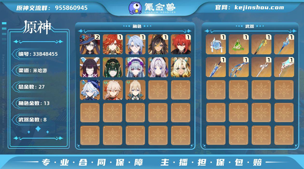 邮箱: 送网易邮箱 总黄数: 27 冒险等级: 58 2命金色角色: 二命莫娜 1命金色角色: 一命迪卢克,一命神里绫人,一命迪希雅,一命玛薇卡 0命金色角色: 枫原万叶,琴,芙宁娜,希诺宁,茜特菈莉,梦见月瑞希,奈芙尔,哥伦比娅 拥有武器: 天空之翼,风鹰剑,松籁响起之时,终末嗟叹之诗,静水流涌之辉,岩峰巡歌,真语秘匣,帷间夜曲 1精武器: 天空之翼,风鹰剑,松籁响起之时,终末嗟叹之诗,静水流涌之辉,岩峰巡歌,真语秘匣,帷间夜曲 亮点: 【sy250】58级/27黄/女主/13个五星角色/8个五星武器0命芙宁娜,1命迪希雅,1命神里绫人,0命枫原万叶,0命琴,2命莫娜,1命迪卢克,0命希诺宁,1命玛薇卡,0命茜特菈莉,0命梦见月瑞希,0命奈芙尔,0命哥伦比娅,精1静水流涌之辉,精1终末嗟叹之诗,精1松籁响起之时,精1天空之翼,精1风鹰剑,精1岩峰巡歌,精1真语秘匣,精1帷间夜曲