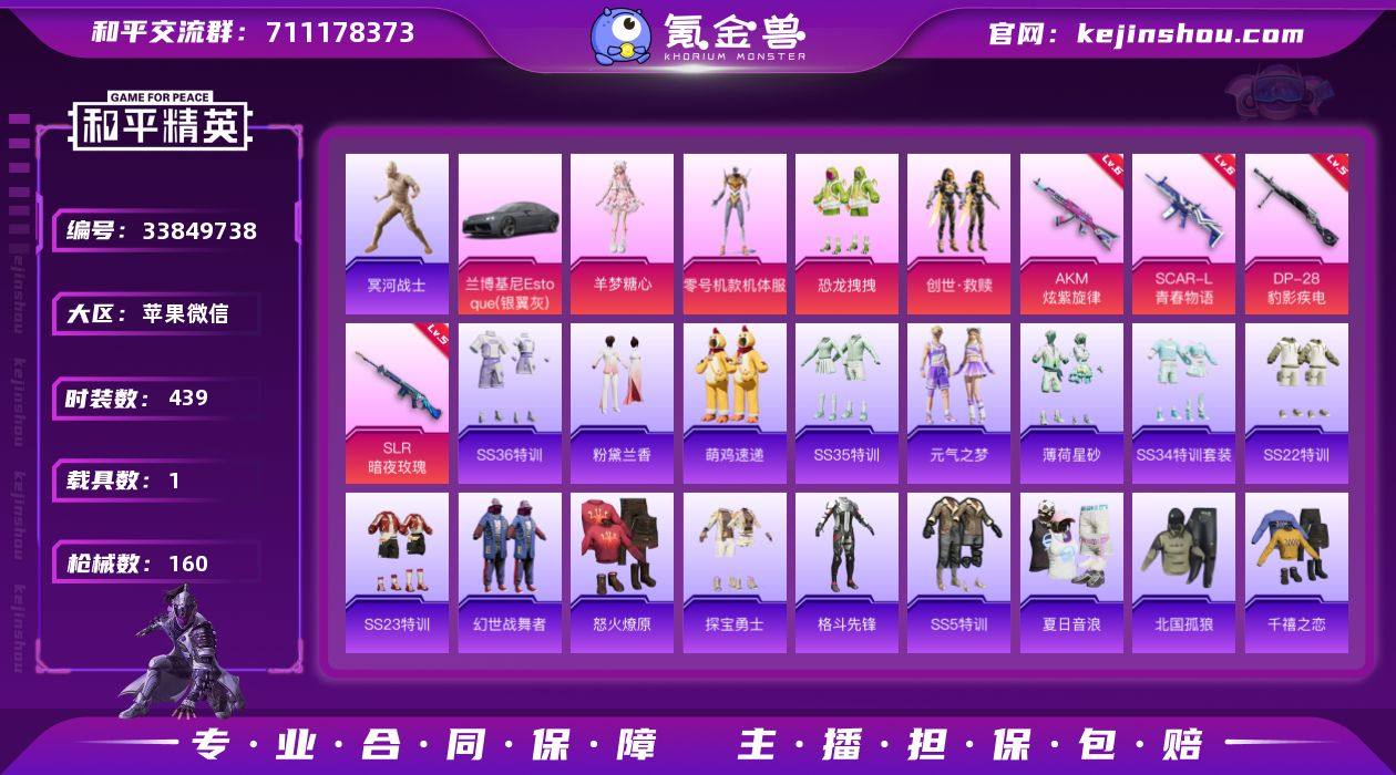 "DB5613 苹果V区 可改实名可转区 战神框 16印记1绝世 48点地铁天赋 身法素材号 4粉4特效枪1载具 黄螳螂 木乃伊 羊梦糖心 恐龙拽拽 M4星际漫游 粉熊包 兰博基尼Estoque(银翼灰) AKM-炫紫旋律/6级,SCAR-L-青春物语/6级,DP-28-豹影疾电/5级,SLR-暗夜玫瑰/5级" 苹果微信-16王牌印记-有战神框-4粉装-4特效枪-1载具-50559热力值-117套装-160枪皮-7卓越印记-4传奇印记 【4粉装】套装-恐龙拽拽,角色-零号机款机体服,角色-羊梦糖心,套装-创世·救赎 【4特效枪】AKM-炫紫旋律/6级,SCAR-L-青春物语/6级,DP-28-豹影疾电/5级,SLR-暗夜玫瑰/5级 【8稀有紫装】M416-星际漫游,冥河战士,雪山精英,明日香款战斗服,龟仙人,暗夜魅影,萌熊伴侣背包(3级),真嗣款战斗服 【1稀有载具】兰博基尼Estoque(银翼灰) 【117稀有时装】零号机款机体服,羊梦糖心,恐龙拽拽,创世·救赎,龟仙人,雪山精英,明日香款战斗服,冥河战士,大橘为重,龙魂突击队,创世·幻影,冰河战士,真嗣款战斗服,蝶变,曼妙人鱼,粉黛兰香,萌鸡速递,元气之梦,薄荷星砂,暗夜魅影,SS35特训,SS29特训,SS5特训,SS16特训,无暇誓言,SS36特训,焰鹰斗篷,暗夜傀儡,醒狮腾龙,福星高照,雪兔飞飞,虎虎生威吉莉,夏日音浪,龙的传人,军刀雅典娜,智慧之神,SS28特...