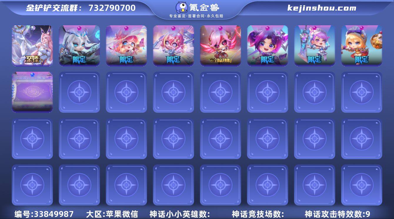 实名: 可修改 贵族等级: VIP8 热门小小英雄: 香水宝石 小小金克丝 小小英雄(卓越): 至臻 香水宝石 不朽阿狸 小小英雄(神话): 香水宝石 小小锐雯,香水宝石 小小奥莉安娜,香水宝石 小小金克丝,全球总决赛限定·T1·小小奥莉安娜,离子火花 小小阿萝拉,离子火花 小小贝蕾亚,月华之子 海月神 小小佛耶戈 稀有棋盘: 香水宝石宫 竞技场(神话): 香水宝石宫 竞技场(英雄): 狗狗GOGO乐园 攻击特效(神话): 香水宝石 魔镜迷阵