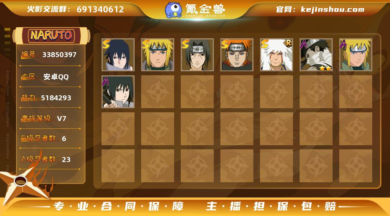 【V7 6S忍 23A忍 111忍 13通灵】518万战力 自来也·舞之豪杰,“宇智波斑”·白面具,宇智波佐助·永恒万花筒,波风水门,佩恩·天道,宇智波鼬·须佐能乎 游q6-2 df15-51,编号:WPEQJ53