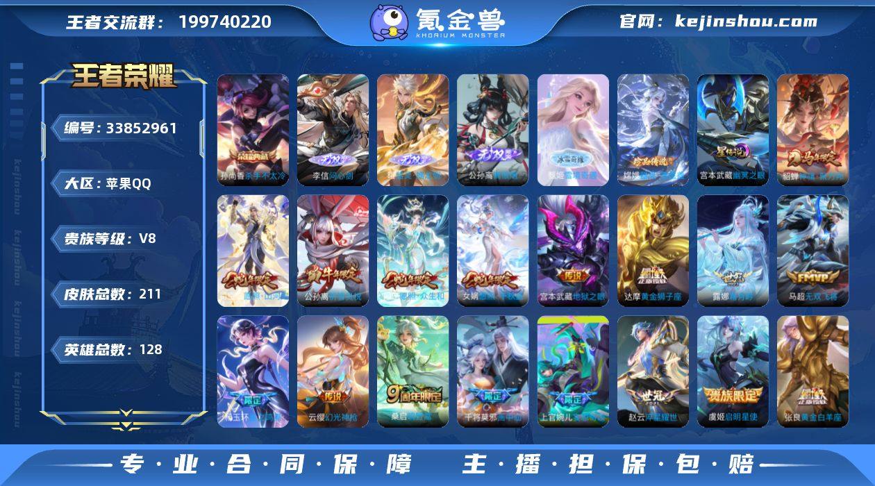 中路32段!苹果Q-V8-永恒钻石III段位-127英雄-211皮肤-1典藏皮肤-4无双-1珍品传说-17传说-53史诗 【英雄全皮】:敖隐全皮 【荣耀典藏】:孙尚香杀手不太冷 【无双皮肤】:李信问心剑,曜器灵螭龙剑,甄姬雪境奇遇,公孙离离恨烟 【珍品传说】:嫦娥器灵落星盏 【传说皮肤】:貂蝉神骥聚万邦,杨玉环星之鸣奏,司空震愿照山河定,女娲愿照千秋盛,妲己愿照众生和,云缨幻光神枪,桑启鸣野蒿,露娜霜月吟,上官婉儿妄想奇谈,干将莫邪画中仙,马超无双飞将,赵云淬星耀世,公孙离祈雪灵祝,虞姬启明星使,张良黄金白羊座,达摩黄金狮子座,宫本武藏地狱之眼 【限定皮肤】:公孙离离恨烟,蒙犽顽岩魄,大乔绒语心约,姜子牙天穹之誓,狄仁杰阴阳师,赵云皇家上将,墨子神迹守卫,芈月重明,夏侯惇朔风刀,曹操烛龙,典韦穷奇,狄仁杰魔术师,狄仁杰万华元夜,达摩星际陆战队,项羽海滩派对,老夫子醍醐杖,老夫子航海奇遇记,貂蝉逐梦之音,程咬金演武夺筹,韩信逐梦之影,兰陵王驯魔猎人,花木兰青春决赛季,孙悟空大圣娶亲,孙悟空孙行者,牛魔御旌,虞姬启明星使,钟馗驱傩正仪,干将莫邪画中仙,雅典娜单词大作战,鬼谷子原初探秘者,弈星混沌棋,公孙离祈雪灵祝,明世隐疑决...