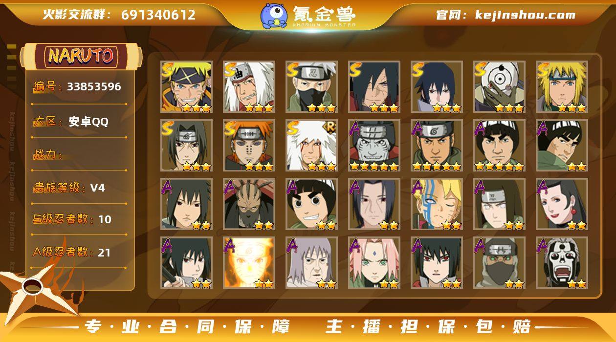 【编号91150 可秒换绑】【店长推荐!极品火影号!带有热门忍者解斑和白面具等等强势忍者!】 10S级忍者数-21A级忍者数 【S级忍者】:宇智波斑「秽土转生·解」(3星),宇智波鼬「须佐能乎」(3星),旗木卡卡西「须佐能乎」(3星),自来也「舞之豪杰」(3星),自来也「传说中的三忍」(3星),波风水门(3星),佩恩「天道」(3星),宇智波佐助「永恒万花筒」(3星),宇智波斑 「白面具」(3星宇智波斑「白面具」),漩涡鸣人·宇智波佐助(3星) 【A级忍者】:飞段(2星),飞段「死司凭血」(2星),干柿鬼鲛(5星),漩涡博人「桃式显现」(2星),漩涡鸣人「九尾查克拉」(2星),迈特凯(5星),我爱罗「疾风传」(2星),蝎(2星),蝎「绯流琥」(2星),角都「地怨虞」(2星),猿飞阿斯玛(5星),宇智波鼬「夏日限定」(2星),宇智波佐助「须佐能乎」(2星),宇智波佐助「万花筒写轮眼」(2星),日向宁次「忍界大战」(2星),李洛克「忍界大战」(2星),春野樱「百豪」(2星),千代「近松十人卫」(2星),不缘(2星),宇智波泉奈(2星),迈特凯「青春爆炸」(2星)