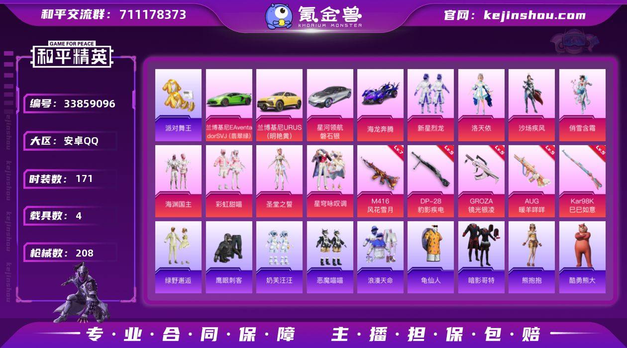【LHPD848】【特价出售/店主推荐】安卓 手Q-无敌战神框-9粉装-5特效枪-4载具-2粉色飞行器-67550热力值-11王牌印记-171套装-208枪皮 【热门品类】:套装-浪漫天命,套装-派对舞王,套装-龟仙人,套装-暗影哥特 【粉色套装】:粉装-新星烈龙,角色-洛天依,粉装-沙场疾风,粉装-俏雪含霜,粉装-海渊国主,粉装-彩虹甜喵,粉装-绿野邂逅,角色-圣堂之誓,粉装-星穹咏叹调 【粉色枪皮等级】:M416-风花雪月(七级),GROZA-镜光银凌(五级),AUG-暖羊咩咩(五级),Kar98K-巳巳如意(五级),DP-28-豹影疾电(五级) 【粉色载具】:兰博基尼Aventador SVJ(翡翠绿),兰博基尼URUS(明艳黄),星河领航(磐石银),海龙奔腾 【粉色枪皮】:M416-风花雪月,GROZA-镜光银凌,AUG-暖羊咩咩,Kar98K-巳巳如意,DP-28-豹影疾电 【粉色飞行器】:炫彩糖果飞行器,庄周梦蝶飞行器 【粉色降落伞】:梦幻火箭降落伞,洛神天依降落伞,风花雪月降落伞,海渊国主降落伞,恐龙拽拽降落伞,庄周梦蝶降落伞,甜梦小狐降落伞,环太平洋降落伞,暖熊萌萌降落伞,音爆索尼克降落伞,时空协奏降落伞,幻影飞狐降落伞,彩虹独角兽降落伞,炫彩糖果降落伞 【稀有套装】:套装-龟仙人,套装-熊抱抱,玩偶服-酷勇...