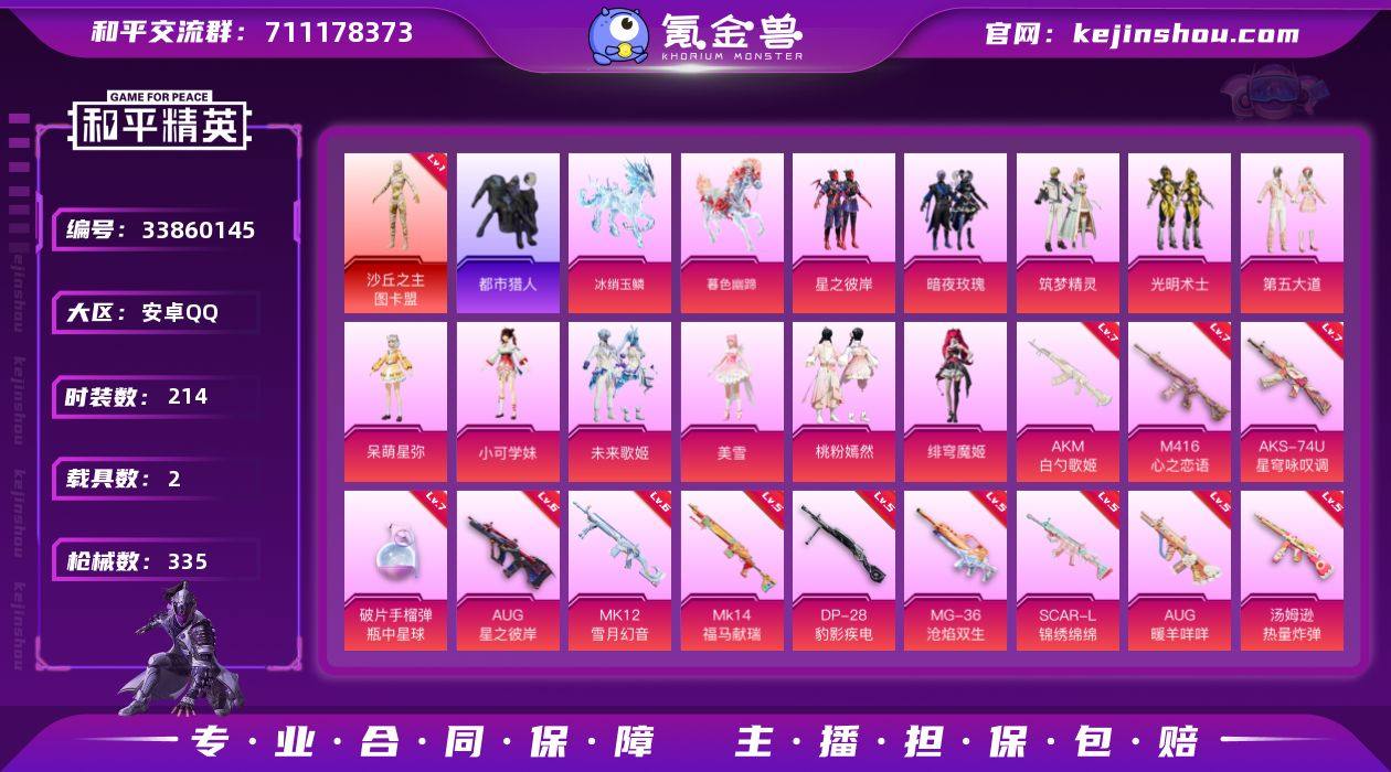 【kyhp1151】安卓 手Q-1神装-11粉装-20特效枪-2载具-9粉色飞行器-111737热力值-18王牌印记-214套装-335枪皮 【红色神装等级】:沙丘之主-图卡盟(一级) 【红色角色神装】:沙丘之主-图卡盟 【热门品类】:套装-浪漫天命,套装-都市猎人,角色-军刀雅典娜,套装-龟仙人,套装-暗影哥特 【粉色套装】:粉装-星之彼岸,粉装-暗夜玫瑰,粉装-筑梦精灵,粉装-光明术士,粉装-第五大道,角色-呆萌星弥,角色-小可学妹,粉装-未来歌姬,角色-美雪,粉装-桃粉嫣然,角色-绯穹魔姬 【粉色枪皮等级】:AKM-白勺歌姬(七级),SCAR-L-锦绣绵绵(五级),M416-心之恋语(七级),AUG-星之彼岸(六级),AUG-暖羊咩咩(五级),ACE32-萌骑漫游(二级),汤姆逊-热量炸弹(五级),AKS-74U-星穹咏叹调(七级),P90-沙丘之主(三级),P90-魔童闹海 敖丙(三级),Kar98K-巳巳如意(五级),Kar98K-圣域龙灵(三级),M24-镜域双华(三级),Mk14-甜梦熊击(五级),Mk14-福马献瑞(五级),M417-第五大道(五级),MK12-雪月幻音(六级),DP-28-豹影疾电(五级),MG-36-沧焰双生(五级),破片手榴弹-瓶中星球(七级) 【粉色载具】:冰绡玉鳞,暮色幽蹄 【粉色枪皮】:AKM-白勺歌姬,SCAR-L-锦绣绵绵,M416-心之恋语,AUG-星之彼岸...