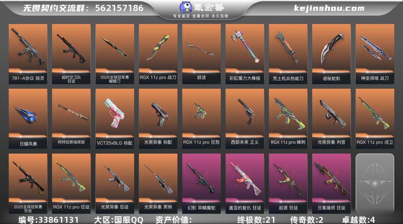 L3381【精品号】25限定 盖亚狂徒 超时空狂徒 光荣套装 BLG标配 显卡套装 起源狂徒 诡秘军刀 异鳞幻影 西部正义 神圣战刀 镭切 781骇灵 日冕狂徒 热能刀 库存: 43920剩余VP:51剩余R点:305 段位:铂金3历史最高:铂金2