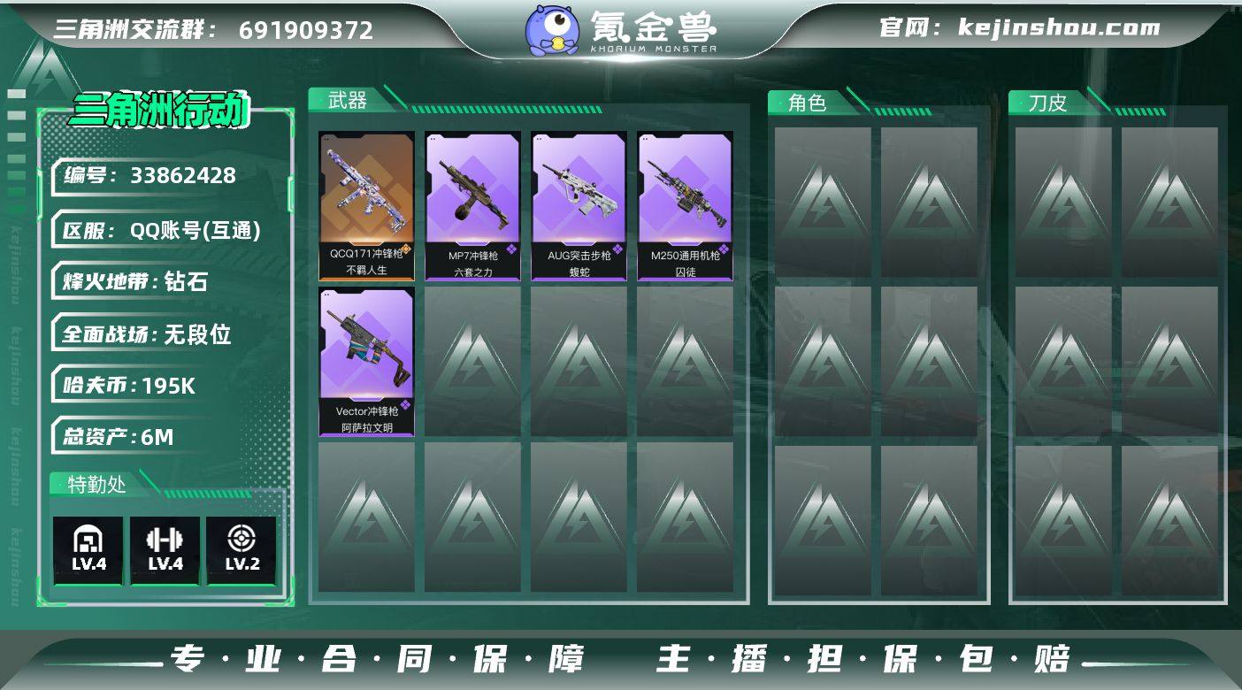 【SJZF8121】总资产6M/哈夫币19万/传说枪皮数1/战场等级3/行动等级60/安全箱等时效性道具以游戏内数据为准,详情请看图/近战-黑鹰/QCQ171冲锋枪-不羁人生/AUG突击步枪-蝮蛇/Vector冲锋枪-阿萨拉文明/MP7冲锋枪-六套之力/M250通用机枪-囚徒/QJB201轻机枪-炽焰/SG552突击步枪-贴花艺术/ AK-12突击步枪-马年新春/Vector冲锋枪-先锋/SMG-45冲锋枪-行动开启/勇士冲锋枪-冰天雪地/Mini-14射手步枪-荣耀列队/SKS射手步枪-弄臣/SV-98狙击步枪-星链科技/SV-98狙击步枪-哈夫克航天/SV-98狙击步枪-精英联盟/QSZ92G-一帆风顺/M4A1突击步枪-粉色涂装/M4A1突击步枪-高雅黑/M4A1突击步枪-海色/QBZ95-1突击步枪-海色/腾龙突击步枪-三角洲力量/M16A4突击步枪-高雅黑/M16A4突击步枪-出货/M7战斗步枪-三角洲力量/M7战斗步枪-黑巧甜心/SG552突击步枪-浅蓝涂装/SCAR-H战斗步枪-红色涂装/CAR-15突击步枪-狂欢/AS Val突击步枪-黑巧甜心/MP5冲锋枪-海色/Vector冲锋枪-几何迷彩/UZI冲锋枪-海色/UZI冲锋枪-狂欢/M1014霰弹枪-重击/杠杆式步枪-出货/PKM通用机枪-出货/M249轻机枪-黄蜂/QJB201轻机枪-典雅/QJB201轻机枪-玲珑/SVD狙击步枪-高雅黑/SR-25射手步枪-黄蜂/SR-25射手步枪-黑巧甜心/SR9射手步枪-出货...