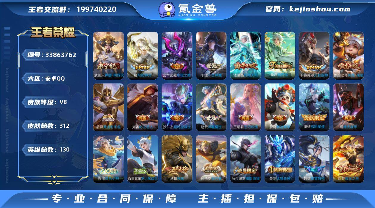 连体和平3粉装-5粉枪-1载具-安卓Q-V8-尊贵铂金IV段位-130英雄-312皮肤-1典藏英雄-1无双-15传说-85史诗 【英雄全皮】:敖隐全皮 【荣耀典藏】:武则天英雄 【无双皮肤】:武则天神器明辉仪 【传说皮肤】:桑启鸣野蒿,鲁班七号寅虎瑞焰,赵云淬星耀世,王昭君乞巧织情,诸葛亮时雨天司,铠绛天战甲,镜炽阳神光,虞姬启明星使,李信一念神魔,刘备时之恋人,干将莫邪久胜战神,梦奇胖达荣荣,后羿黄金射手座,宫本武藏地狱之眼,狄仁杰超时空战士 【限定皮肤】:姜子牙天穹之誓,狄仁杰阴阳师,小乔纯白花嫁,赵云皇家上将,嬴政优雅恋人,孙尚香蔷薇恋人,鲁班七号寅虎瑞焰,庄周高山流水,高渐离死亡摇滚,钟无艳超时空战士,白起夜都怪侠,芈月幻夜卜梦,元歌无心,甄姬女儿国国王,甄姬落雪兰心,马可波罗暗影游猎,狄仁杰魔术师,达摩沙漠行僧,项羽海滩派对,老夫子航海奇遇记,关羽冰锋战神,程咬金演武夺筹,韩信傲雪梅枪,兰陵王金庭之子,孙悟空孙行者,后羿辉光之辰,后羿如梦令,后羿圣弓游侠,李元芳云中旅人,虞姬启明星使,钟馗驱傩正仪,女娲朔望之晖,干将莫邪真爱魔法,雅典娜黎明之约,太乙真人华丽摇滚,鬼谷子五谷丰年,诸葛亮时雨天司,黄忠烈魂,黄忠火...