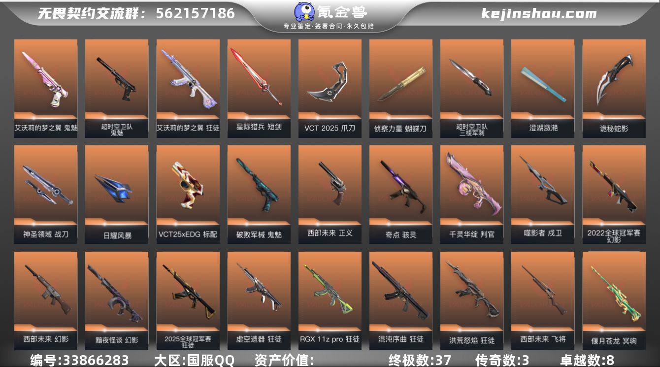 【精品号】w5535 猫猫鬼魅 天玄刀 离子正义 荆棘链刃 莲花判官 猫猫狂徒 超时空三棱军刺 25冠军狂徒 澄湖潋滟 掠夺狂徒 紫金狂徒 超时空鬼魅 22冠军幻影 洪荒狂徒 显卡狂徒 夜刃诡镰 神之刃 掠夺冥狙 奇点骇灵 侦查蝴蝶刀 暗夜幻影 离子2.0狂徒 嗜影戍卫 虚空狂徒 侦查幻影 起源雄鹿 资金爪刀 盖亚鬼魅 混沌狂徒 苍龙冥狙 黑波之刃 vct25爪刀 归零者2.0莽侠 破败鬼魅 西部套 vct25EDG标配 镭切 库存: 82870 剩余VP:17 剩余R点:30 段位:超凡1 历史最高:超凡2