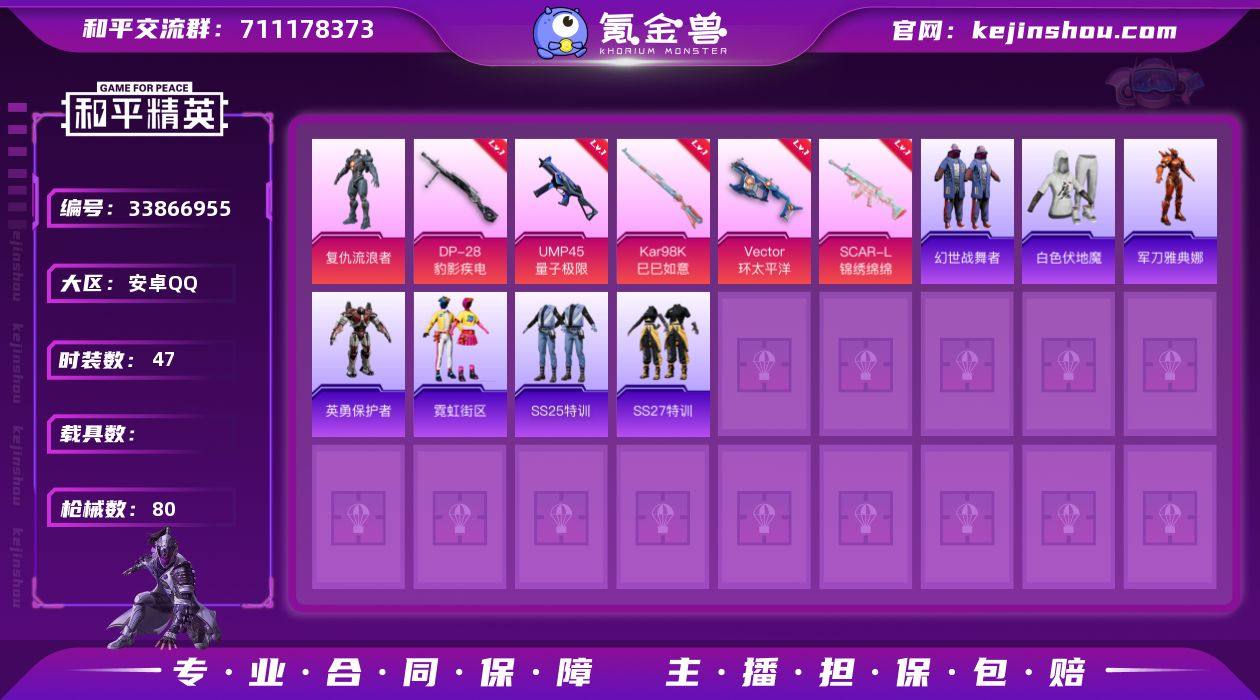 1粉装 7粉枪 47套装 80枪皮 11热门 复仇流浪者 幻羽潜行 龟仙人 空岛之星 惊鸿侠骨 锦衣飞扬 酒红色名流 龙的传人 绯格组合 完美偶像 蓝彩潮人 旭日情侣 缤纷果语 冰川特警 DBS-焰鹰斗篷 DP-28-焰鹰斗篷 汤姆逊-耀粉歌者 汤姆逊-环太平洋 AUG-耀粉歌者 S12K-玩趣呆呆 M249-糯团青竹 蜜獾-天降萌叽 MG3-惊鸿侠骨 SCAR-L-锦绣绵绵(5级) AMR-乌木金纹 M200-惊鸿侠骨 UZI-啾咪啾咪 爆炸猎弓-惊鸿侠骨 AWM-焰鹰斗篷 M417-惊鸿侠骨 Vector-焰鹰斗篷 MP5K-乌木金纹 UZI-天降萌叽 UMP45-诡娃娃 AKM-龙的传人 Vector-环太平洋(6级) P90-乌木金纹 Vector-治愈之星 Kar98K-巳巳如意(5级) DP-28-豹影疾电(5级) UMP45-量子极限(5级) 军刀雅典娜 英勇保护者 白色伏地魔 SS27特训 SS25特训 NV战队服 AKM-环太平洋 M249-彩虹符号 MG3-幻世战舞者 M416-蓝色火焰 霓虹街区 炫彩糖果飞行器