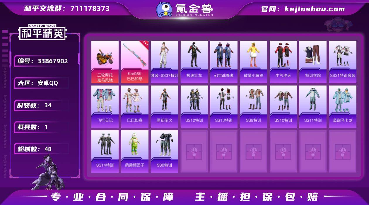 可二次【1特效枪1载具特价号 秒换绑不用等】 安卓Q区-13847热力值-34套装-48枪皮 【1载具】 鬼马风驰【1特效枪】 Kar98K-巳巳如意(1级)【30热门】 极速红龙 SS9特训 SS8特训 SS10特训 GROZA-乌木金纹 SKS-糯团青竹 M416-夜灯 MG3-幻世战舞者 M416-蓝色火焰 破蛋小黄鸡 特训学院 牛气冲天 蓝甜马卡龙 AWM-天降萌叽 SS11特训 SS12特训 SS13特训 SS14特训 SS31特训 巳巳如意 大砍刀-像素花束 战术大师 M416-阿狸红 P18C-原初圣火 Mini14-炫彩节奏 平底锅-飞行日记 平底锅-原初圣火 破片手榴弹-萌趣颜团子 SS37特训 元素星魂【7背包】 SS8赛季背包(3级) SS7赛季背包(3级) SS11赛季背包(3级) SS9赛季背包(3级) 萌趣颜团子背包(3级) 炫彩节奏背包(3级) SS10赛季背包(3级) 营地ID:707626985